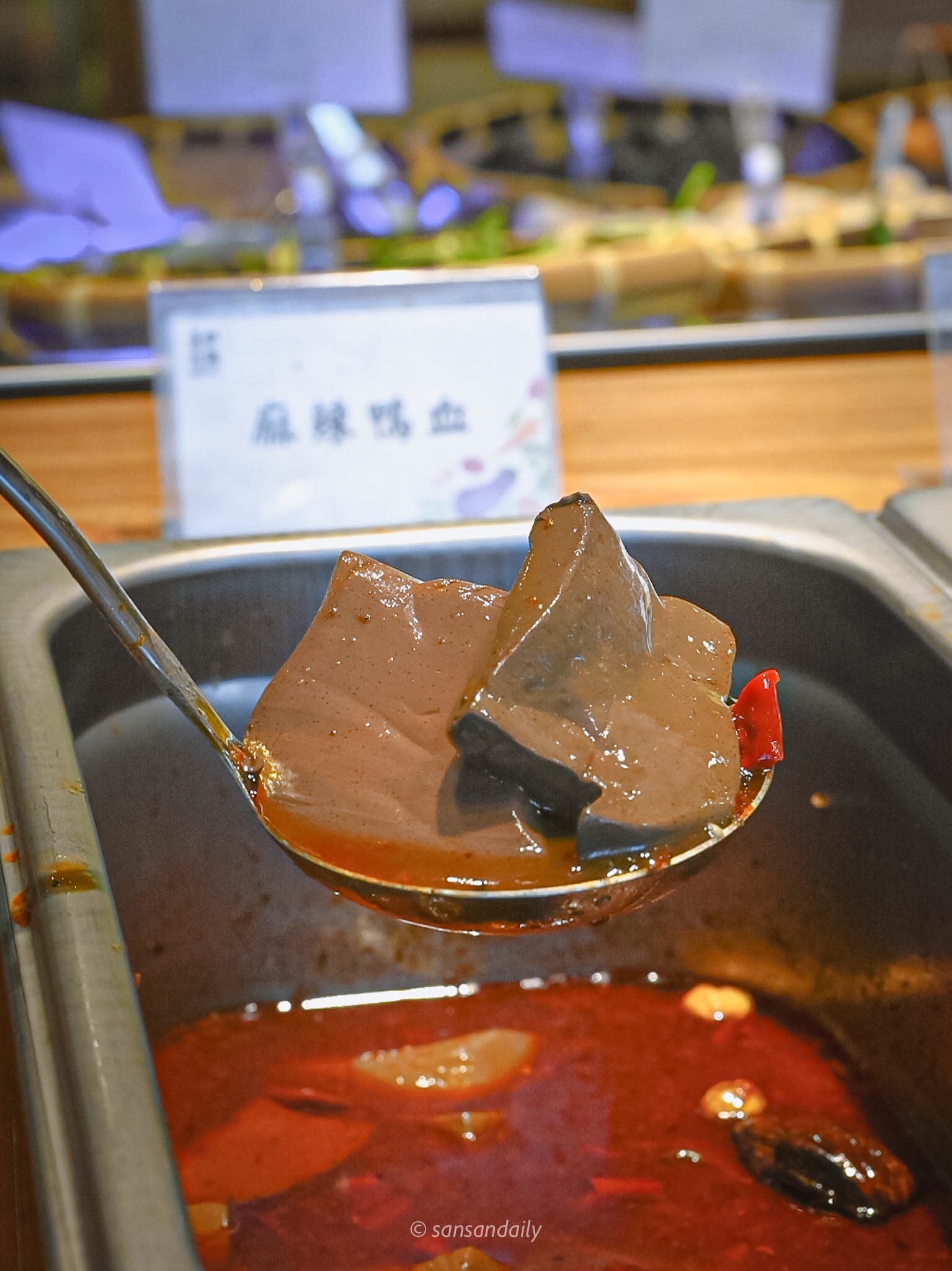▲ 人氣很旺的麻辣鴨血也不要錯過,如果有點麻辣湯頭的話,一定要來撈點鴨血和豆腐料,無限自取吃的過癮、吃的開心。