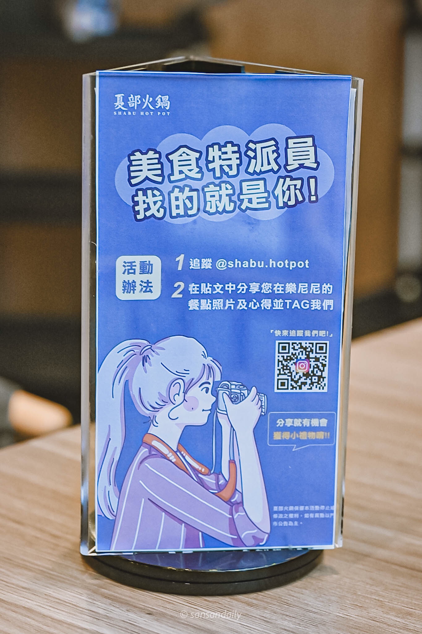 夏部火鍋 在ATT 4 FUN的四樓,出電梯右轉就可以看到,風格很時尚、蝦趴,相當好認。