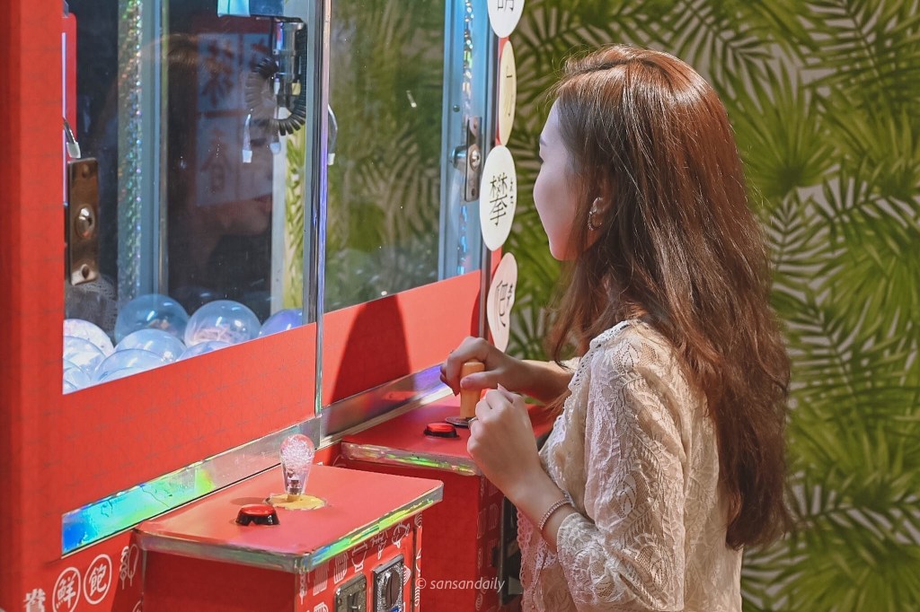 吃飽喝足休息一下,離開前還可以玩這個卡哇伊的夾娃娃遊戲,裡面的獎項包含餐卷折抵等,夾到就可以在下一次使用唷!