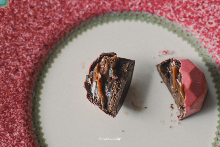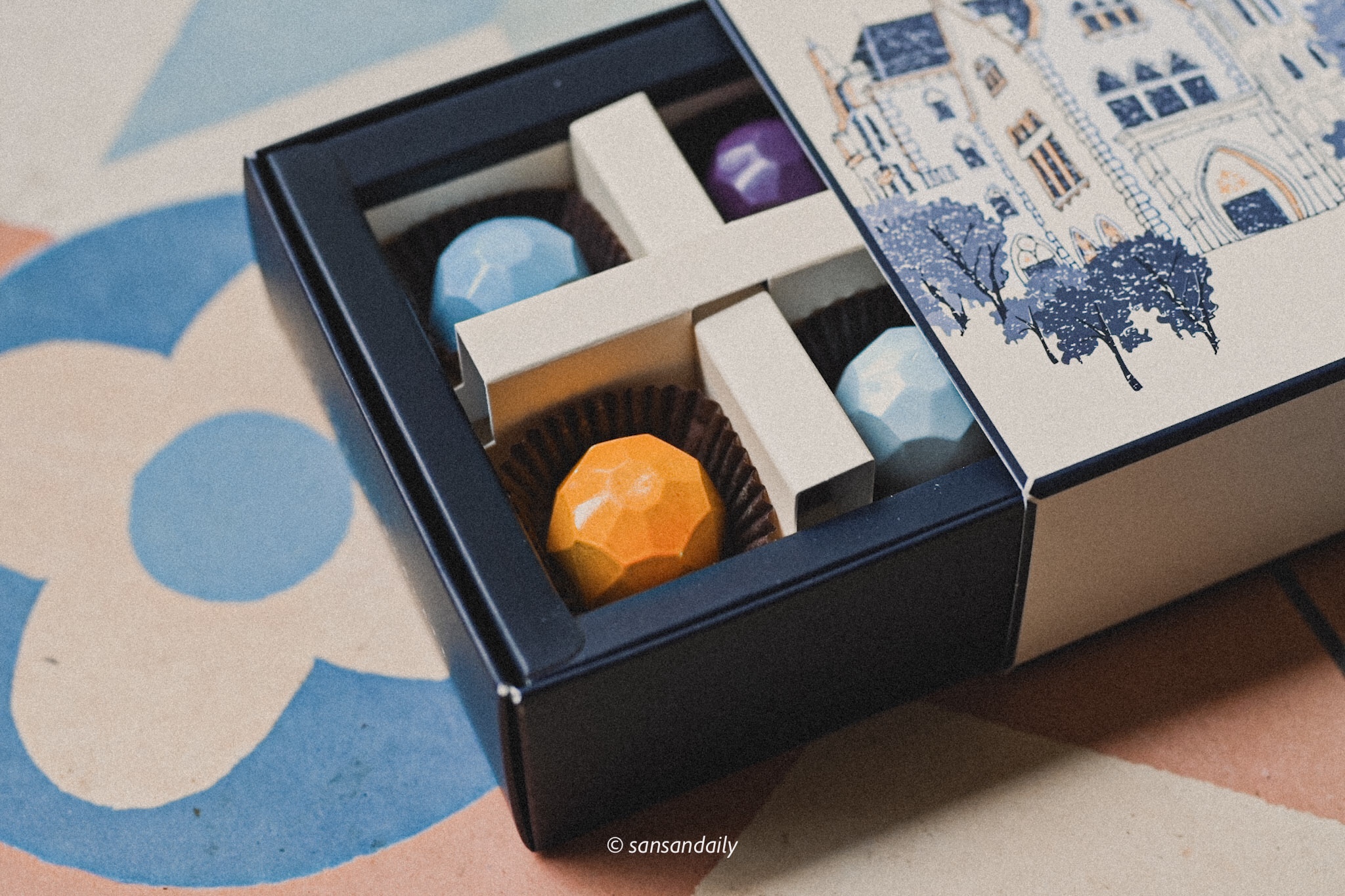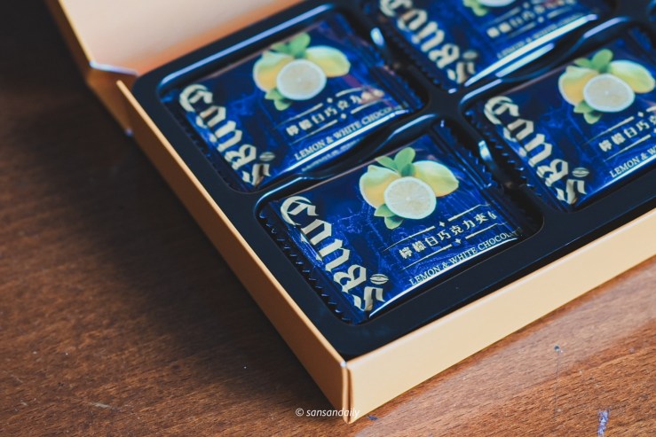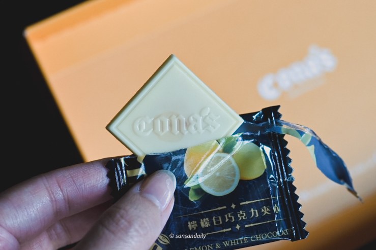 入口即化的巧克力外層,和驚喜連連的風味內餡,微酸中帶點甘甜,檸檬清香與濃郁巧克力融合,滋味讓人喜愛又不膩口!