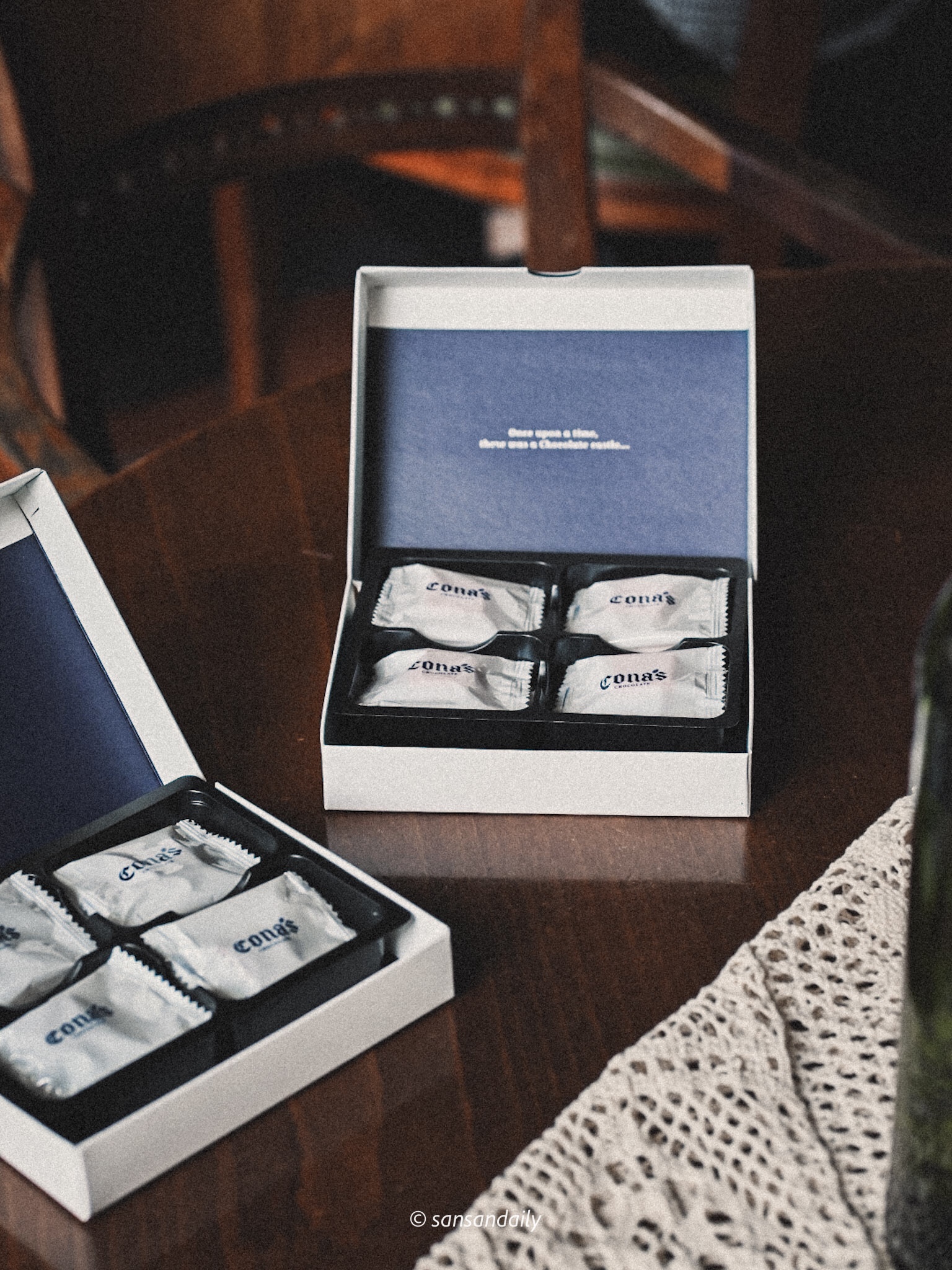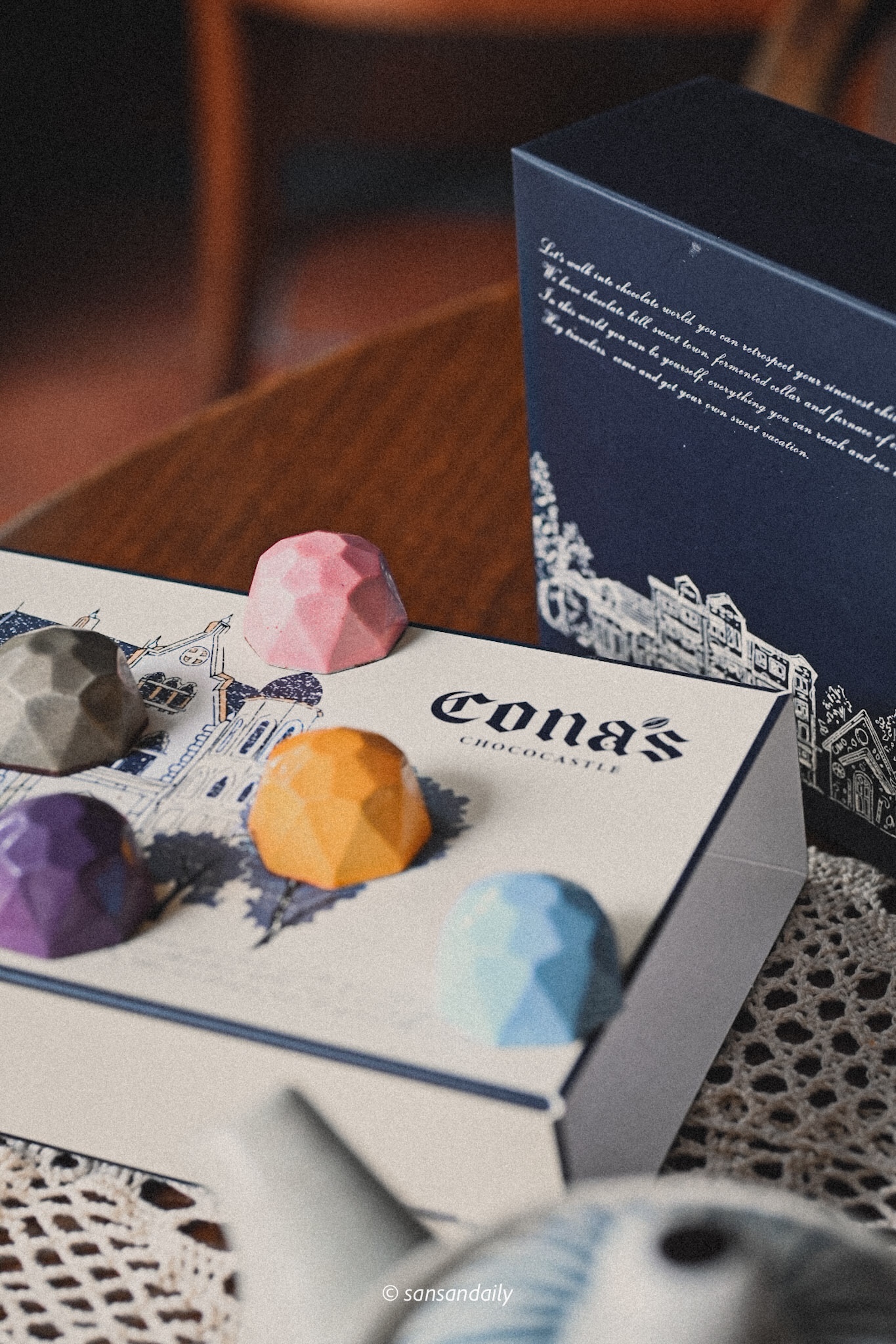 這此與Cona’s妮娜巧克力的合作開箱,在我都還沒收到貨之前,小表妹們就已經興奮的「姊姊!姊姊!要分我吃唷~」大概是因為在她們去過南投的「Cona’s Chocolate 妮娜巧克力–清境創始店」後,就對Cona’s的綺麗夢幻氛圍念念不忘,當然,我是不會說他們是對巧克力情有獨鍾而已(笑)