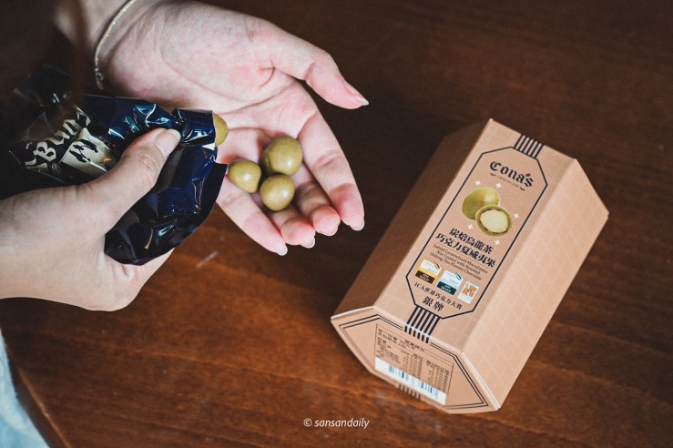 Cona’s 嚴選台灣高山烏龍茶,與比利時白巧克力調配出完美比例,夾在巧克力外衣下的是我最喜歡的夏威夷果。「炭培烏龍茶巧克力夏威夷果」入口後立刻散發出渾厚甘醇的茶香搭,與巧克力相當合拍的脆口夏威夷果更增添了多層次的豐富口感。
