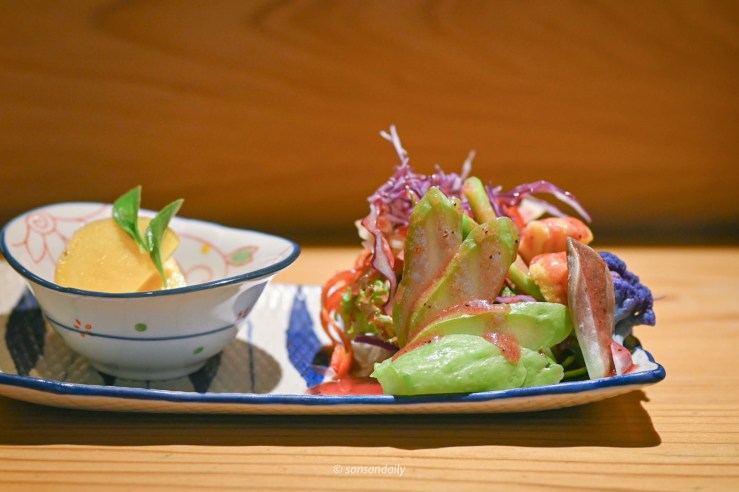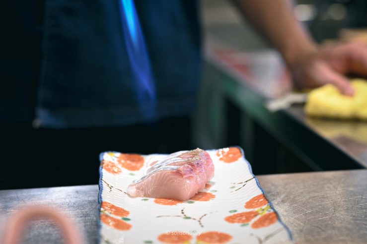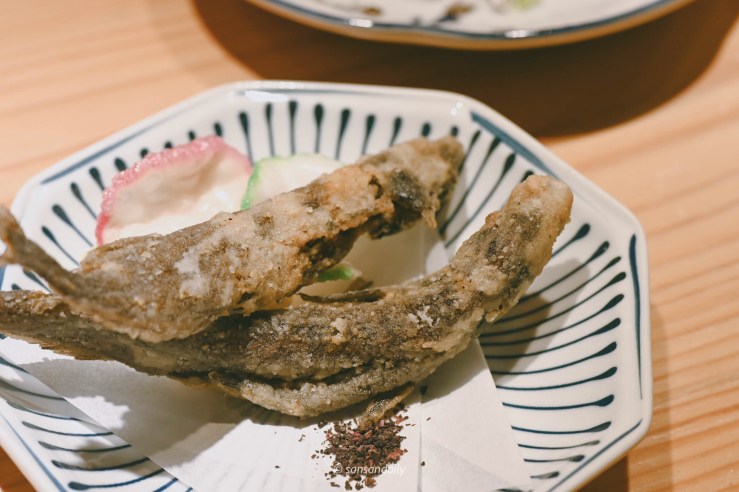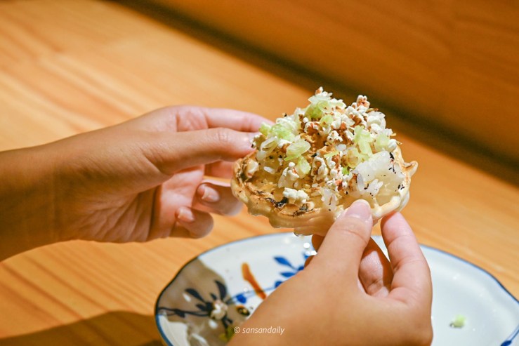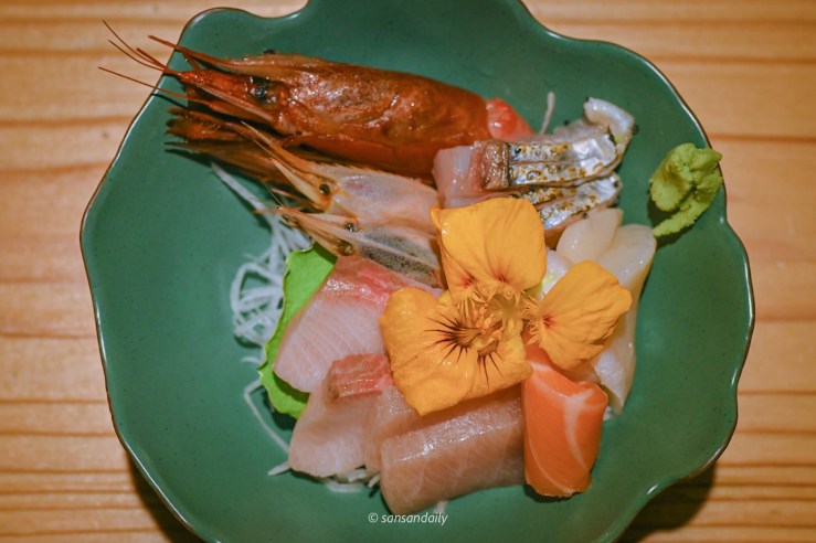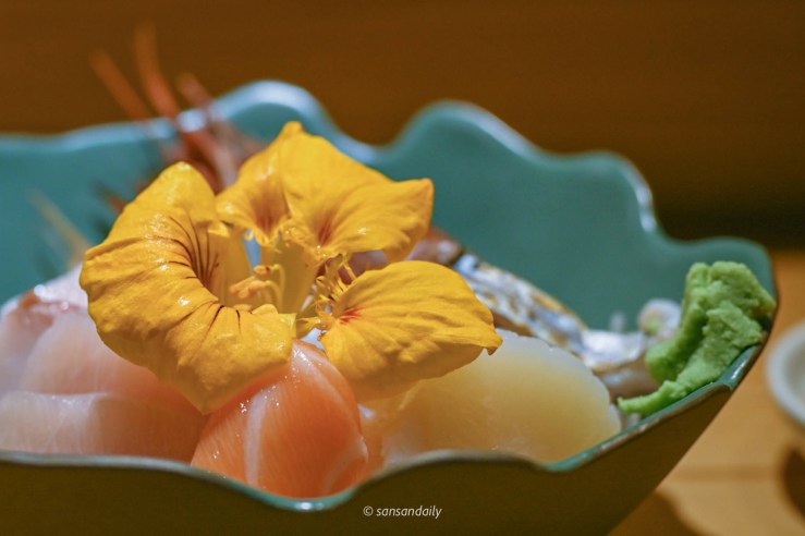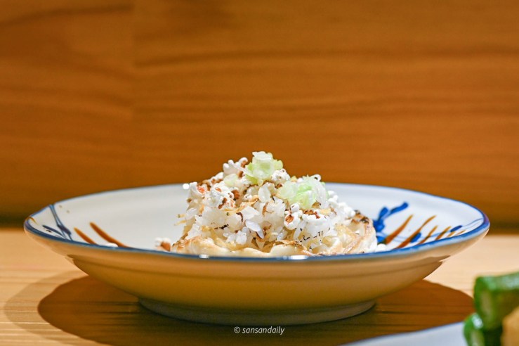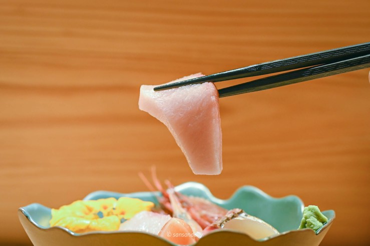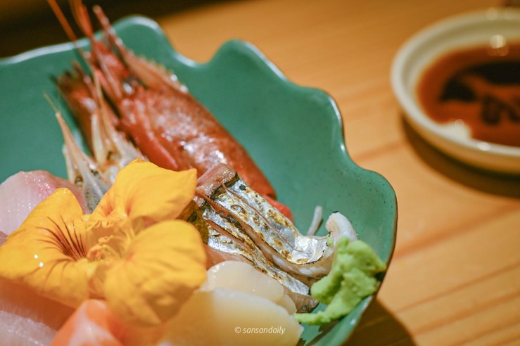 看著好美吶,但是sansan試了一口還是不敢吃生魚片,但沒有關係!如果你跟sansan一樣還沒突破生魚片這關的,師傅都可以改為炙燒,只要在預約訂位時提前告知即可唷。