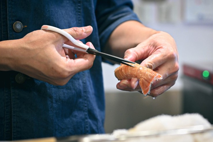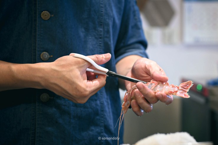 師傅手中的角蝦肉身豐滿,體型碩大,聽說角蝦的甜度高,推薦敢吃生食的人一定要嘗試看看!