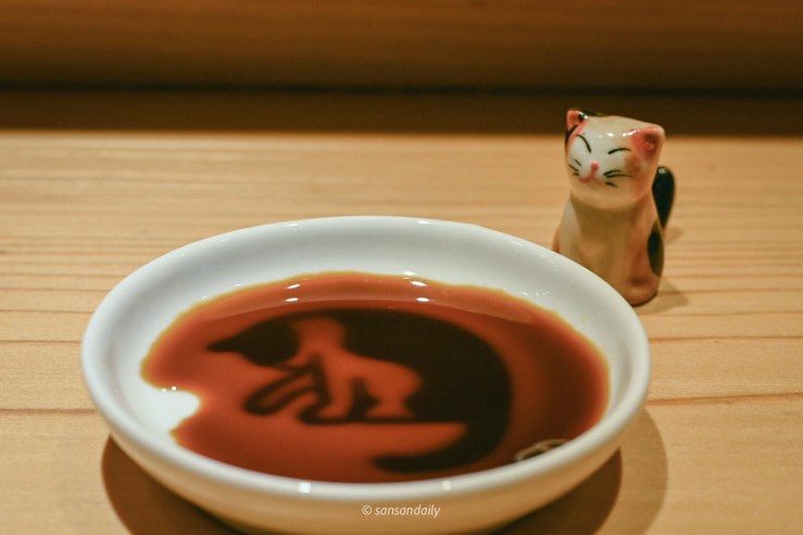 漁當家 準備的可愛的喵咪醬油盤。