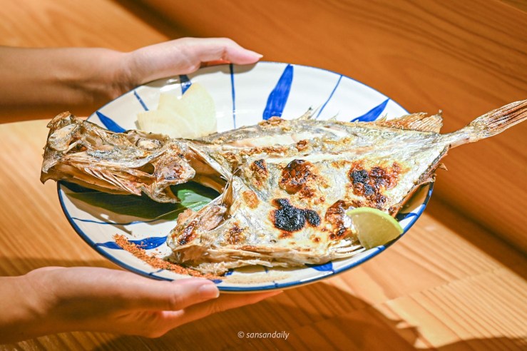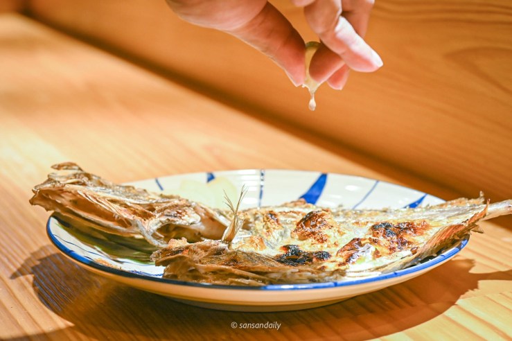 來 漁當家 前,朋友就先跟我介紹過他們家的厲害絕活,烤魚絕技!從小就愛吃烤魚的sansan,對烤魚非常挑,不能乾柴有保有肉汁、適當的油脂但不能油膩、鹹味適中不可搶過魚肉的鮮甜,而且我最喜歡簡單的鹽烤原味再擠上一點提味的檸檬汁!想想就要流口水