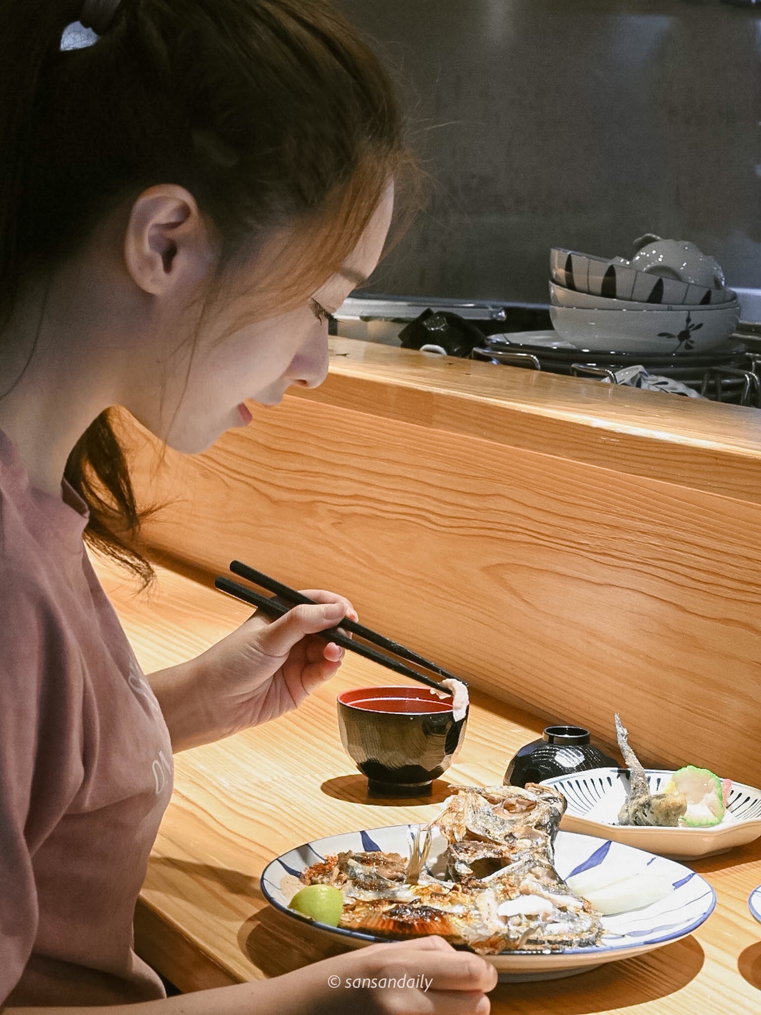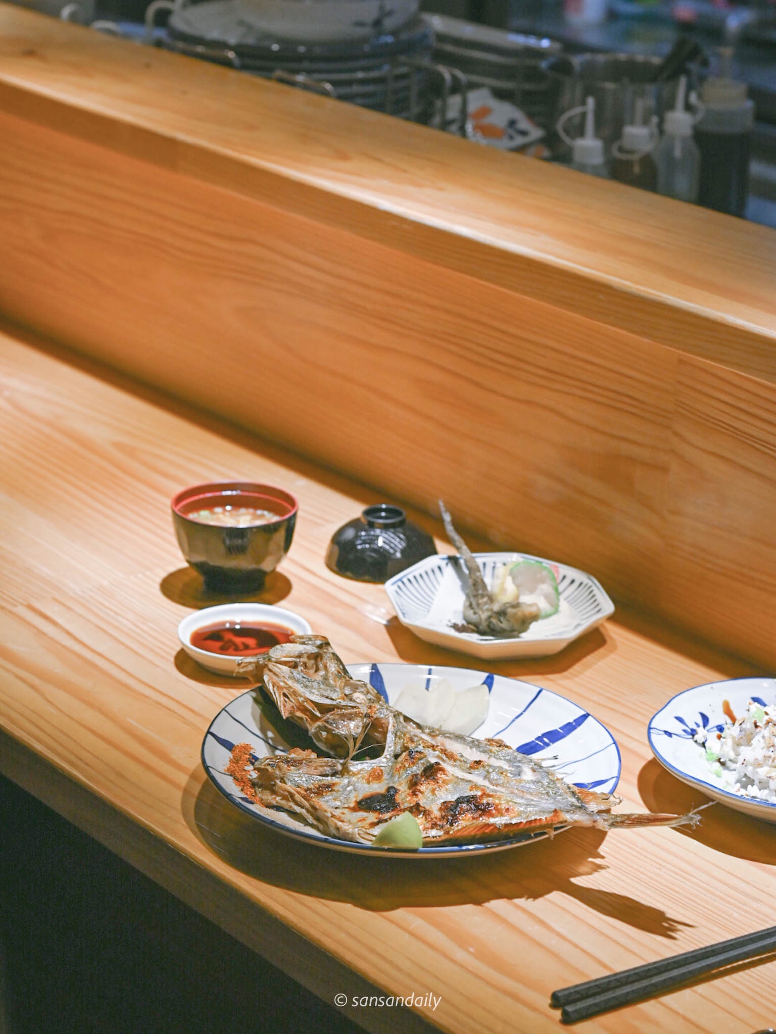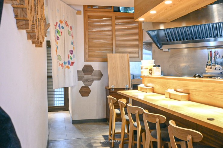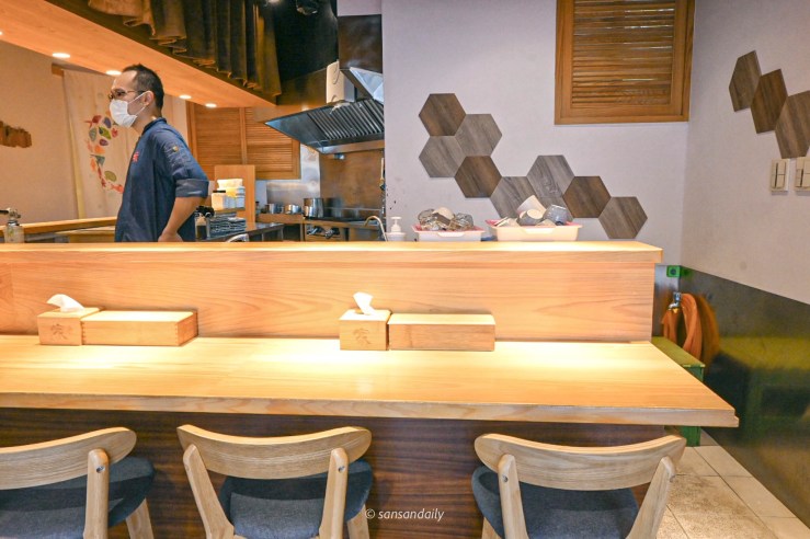 每個位子都可以看到老闆「當家主廚」的料理過程,邊享用美食邊欣賞師傅們的精湛手藝。sansan在看到其他客人滿臉笑容的與師父有說有笑的邊聊天邊用餐,深刻感受到「家」的感覺很自然的在這個空間裡營造出輕鬆、愉快的溫馨氣氛,我非常喜歡這種感覺。