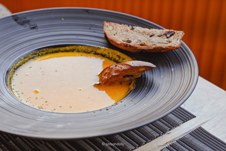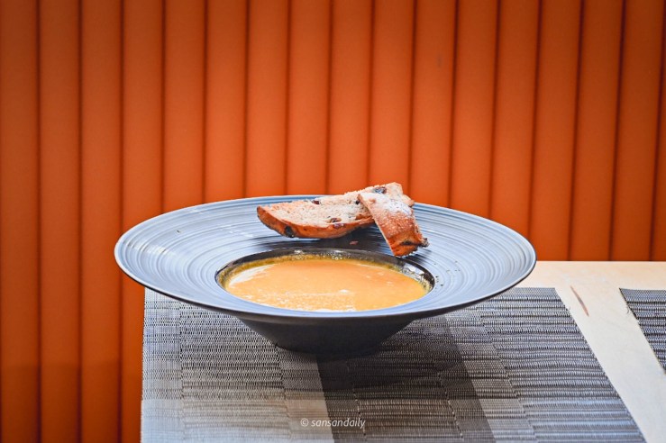 濃郁的南瓜濃湯,配上很強的麵包,整體來說,麵包更加讓人印象深刻,香氣濃郁,沾著濃湯一起吃相當美味!推薦給南瓜控。
