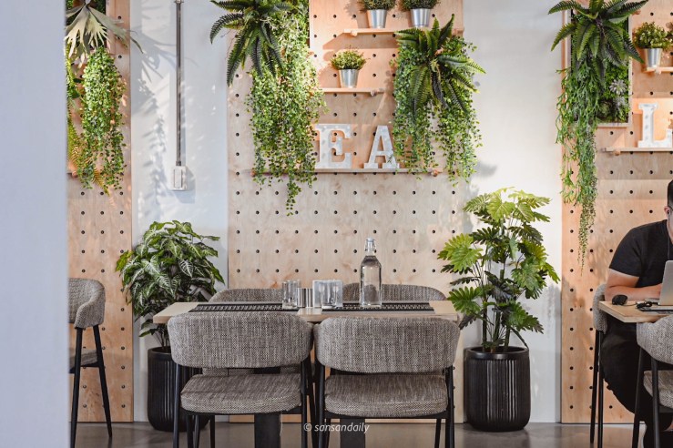 被植被裝飾的空間,充滿綠意與生機,再結合健康飲食的概念,用森林系的風格打造出完美的「健康」concept
