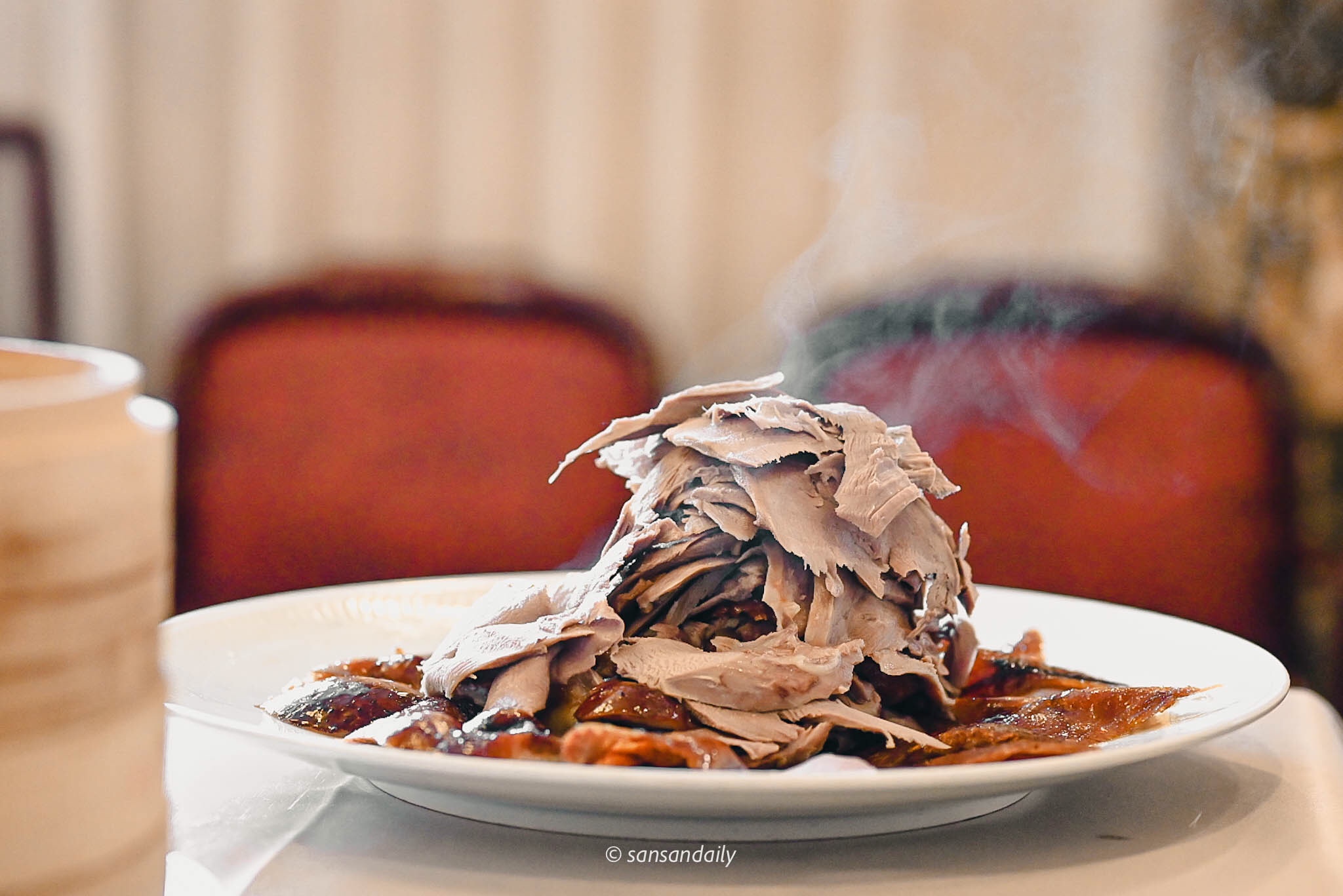 片鴨秀結束,熱煙還不斷從鴨肉堆中冒出