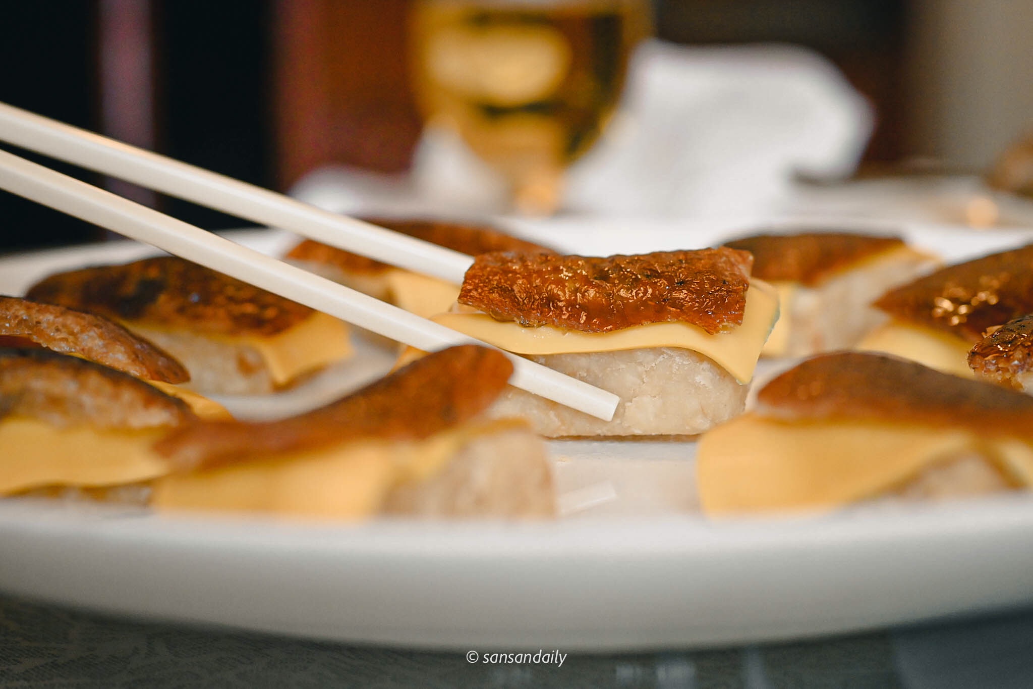 搭配起司片後,鴨壽司簡直在發光!