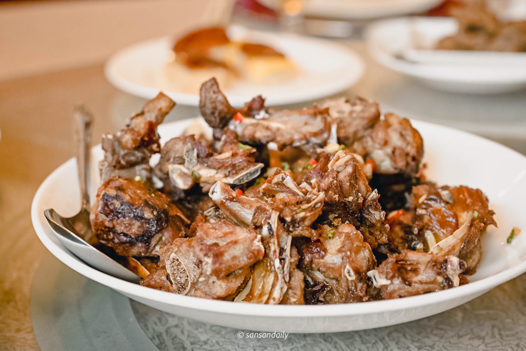 當天嘴巴破皮不敢挑戰,只能望著「鹽酥鴨骨」流口水的sansan。看著朋友吃了一口直接大讚說要打包回家配酒(?)簡直哭笑不得吶
