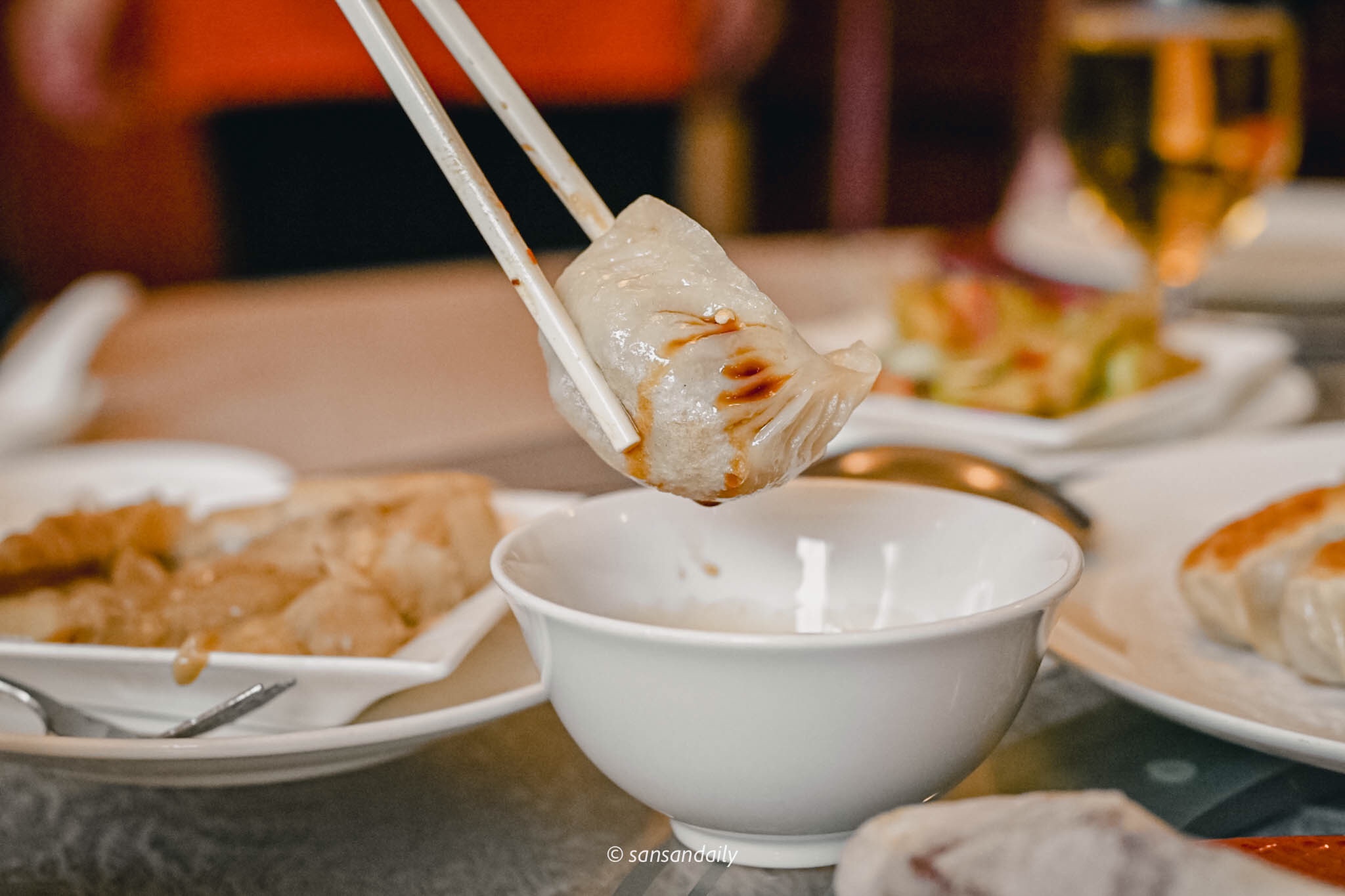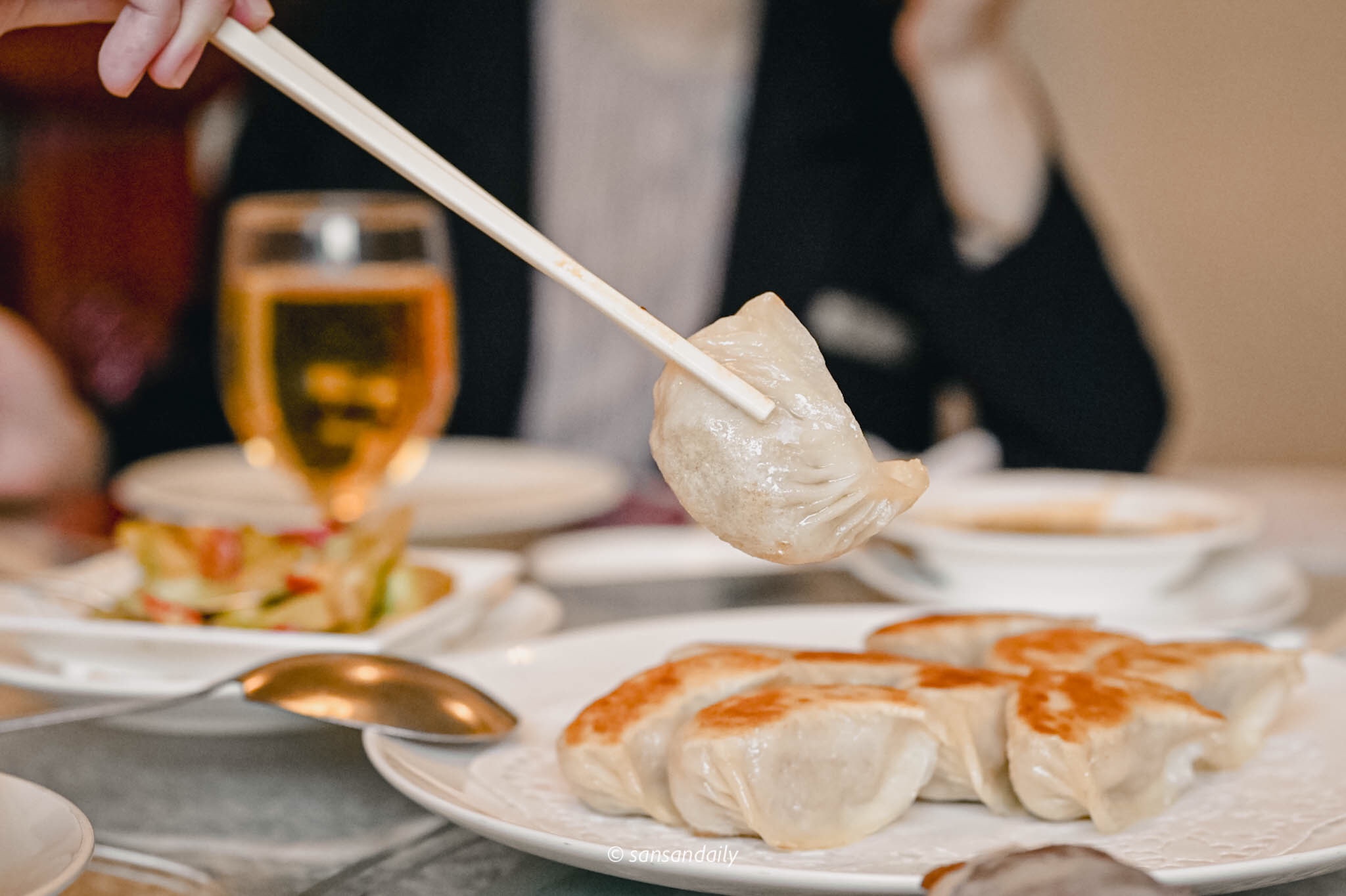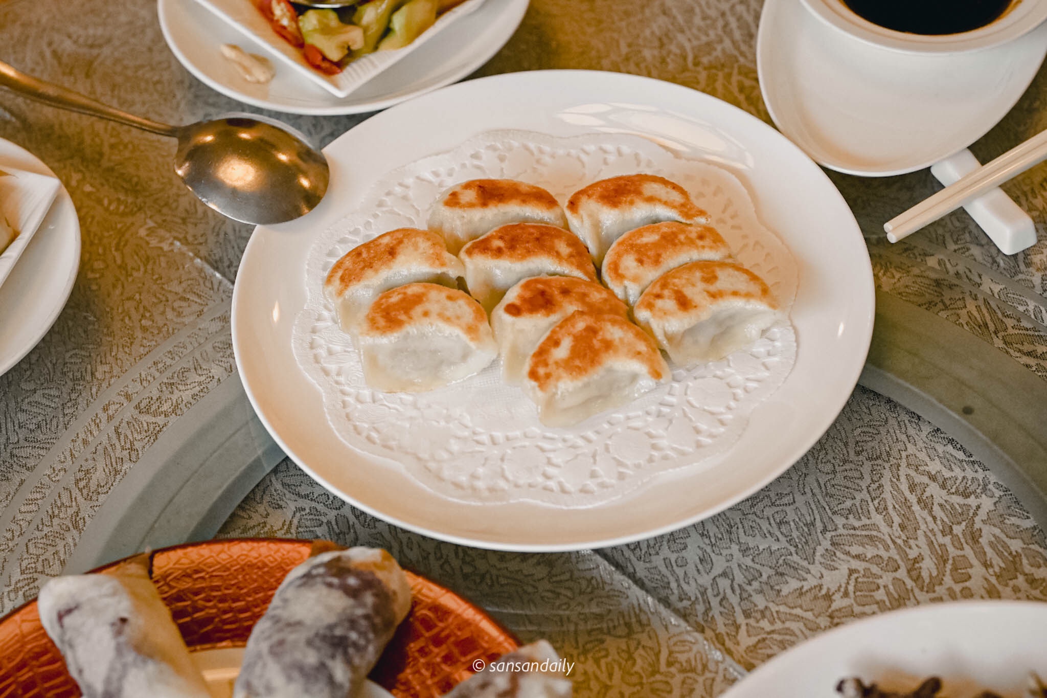 煎的金黃的鮮蝦煎餃,除了飽滿的豬肉餡外,扎扎實實的鮮蝦讓煎餃的鮮甜更上層樓。蘸點新鮮辣椒醬油更是過癮。