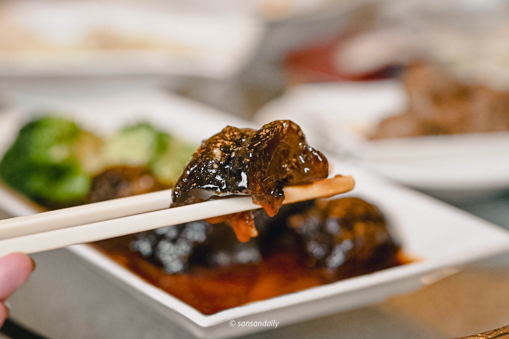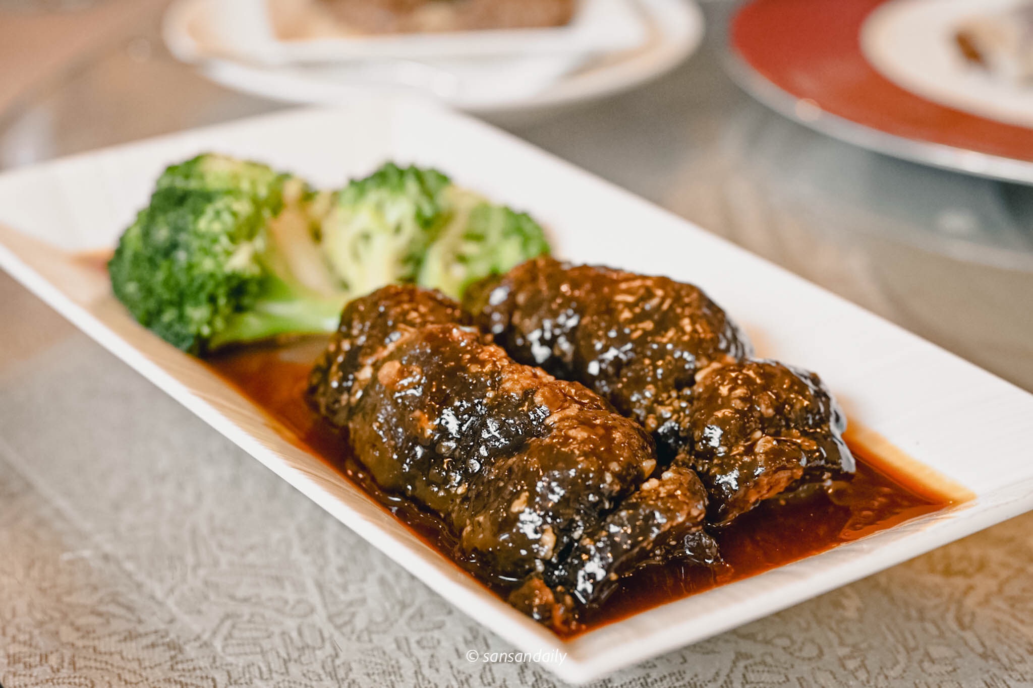 高湯煨煮的海參淋上特製醬汁,外脆黏內軟嫩、滿滿的膠質口感入口軟綿迷人的不可言喻,沒想到呀!黑黑不起眼的烏參竟然有這般高級口感~