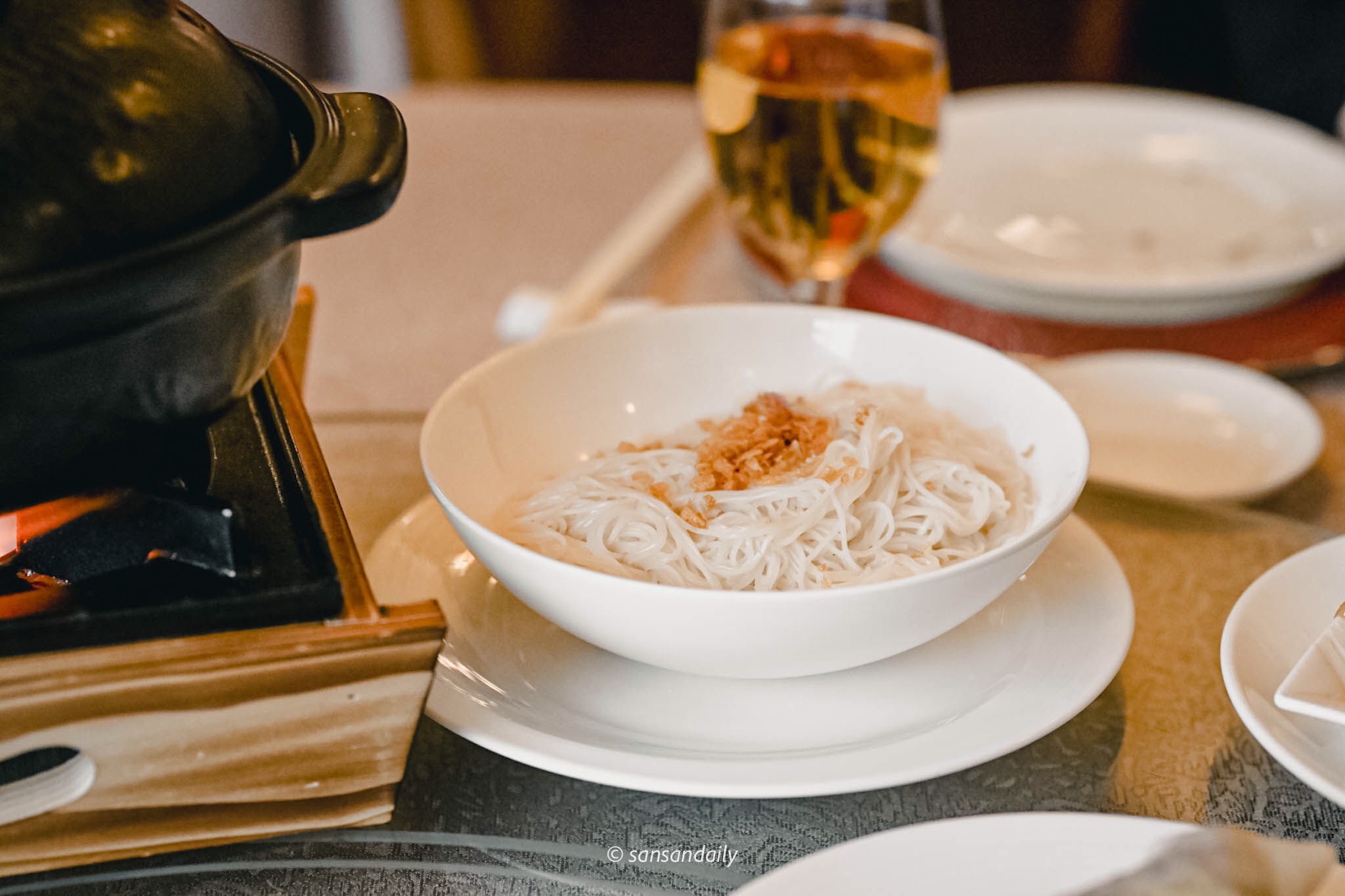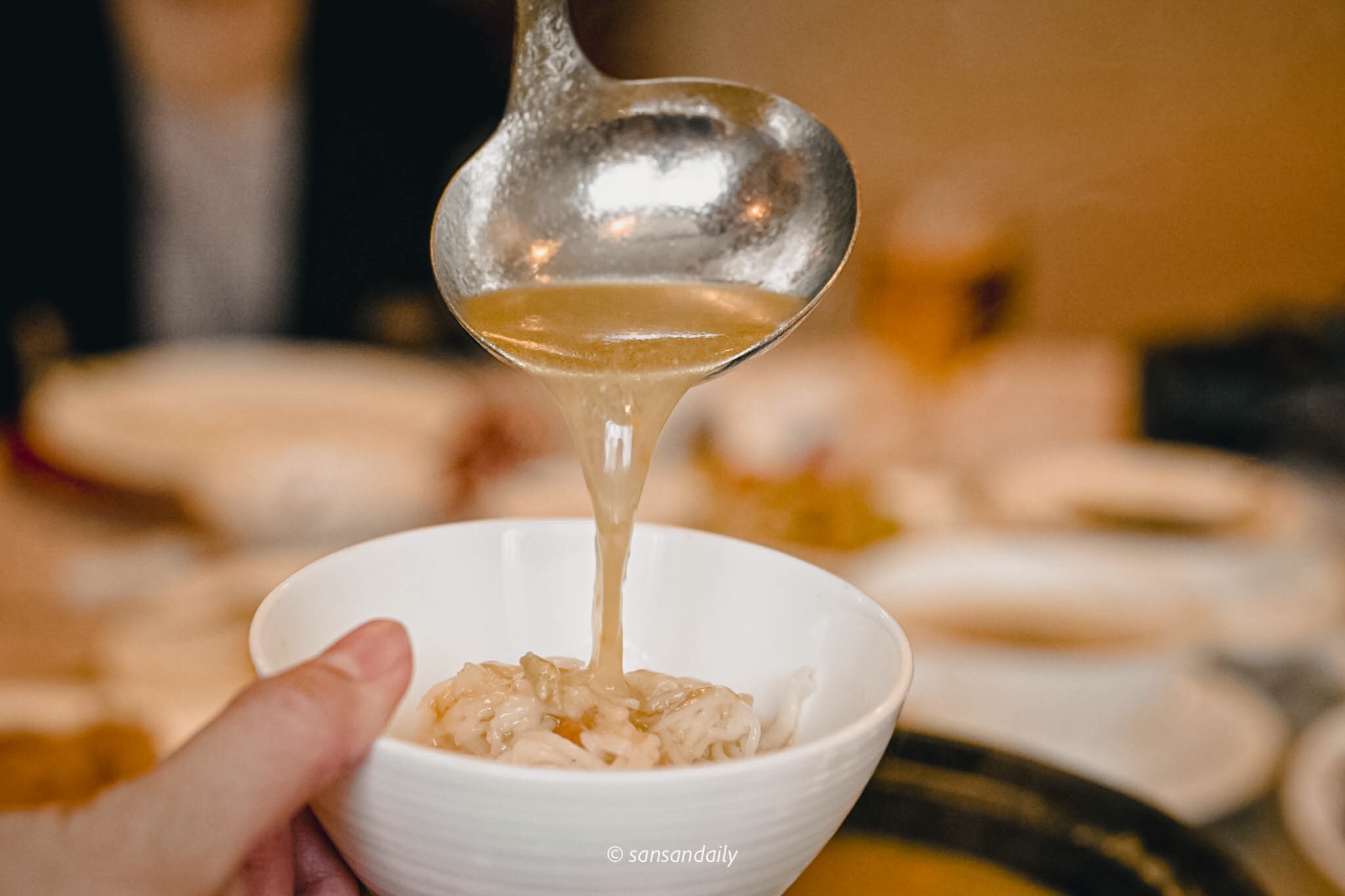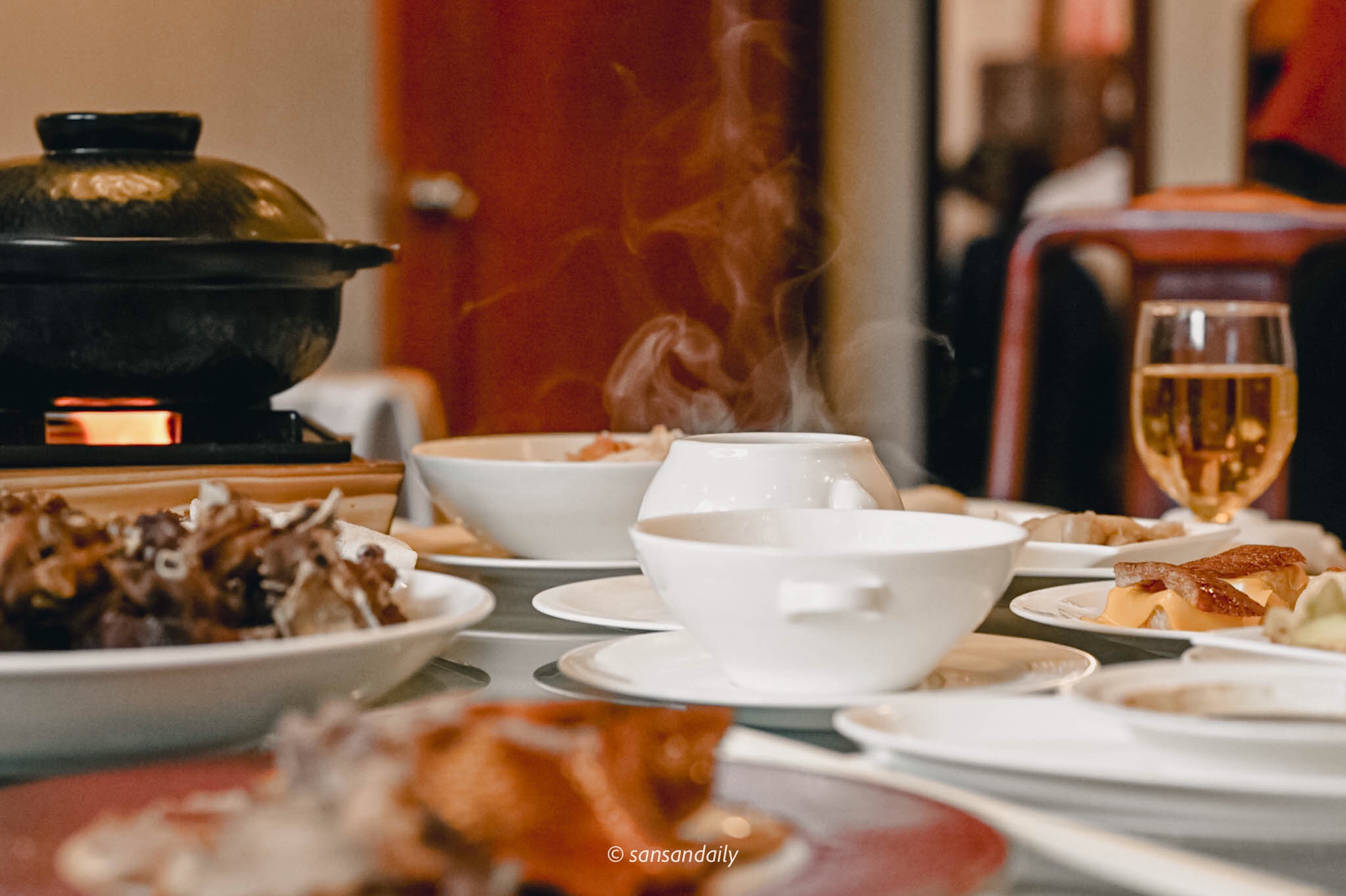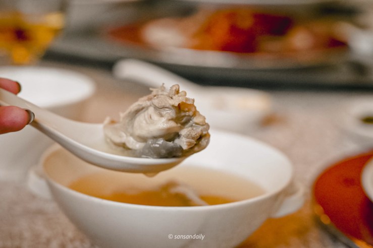 小碗盅盛裝,適合一人一碗的「瑤柱燉雞盅」與「雞湯獅子頭」,我真的很愛這種鮮味十足的金黃色煲湯,滿滿的食材精華鎖在一碗熱湯中,冬日裡的幸福滋味。