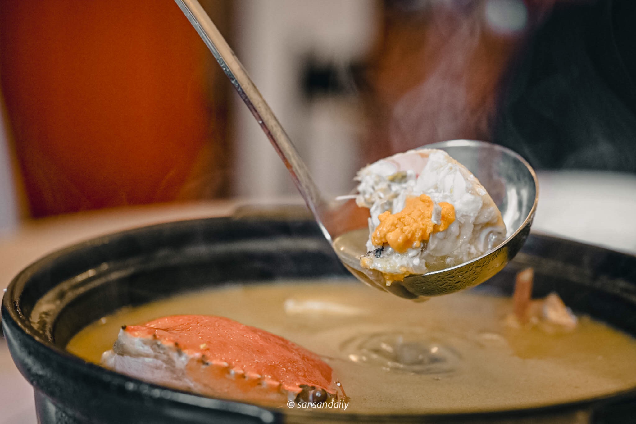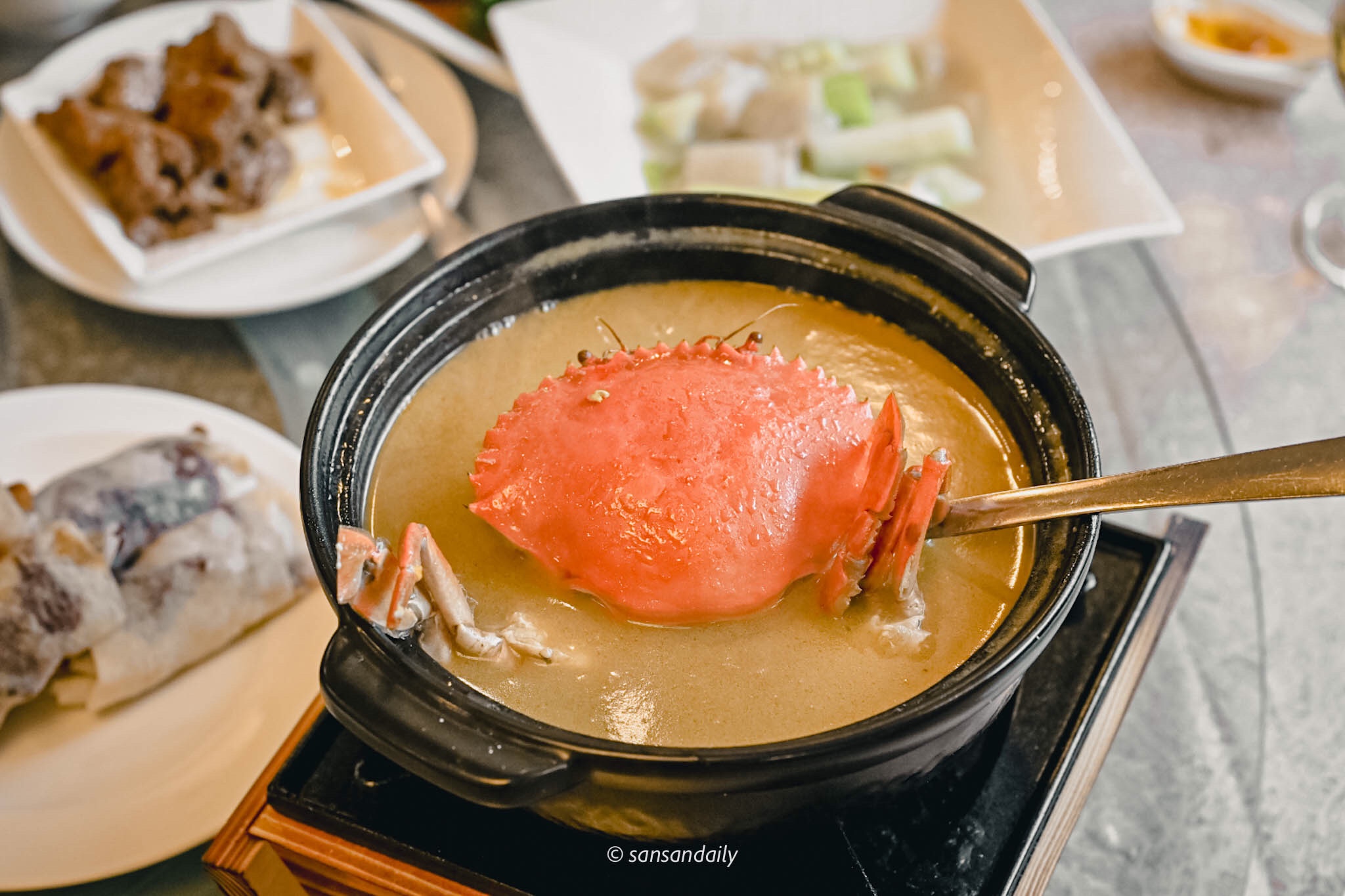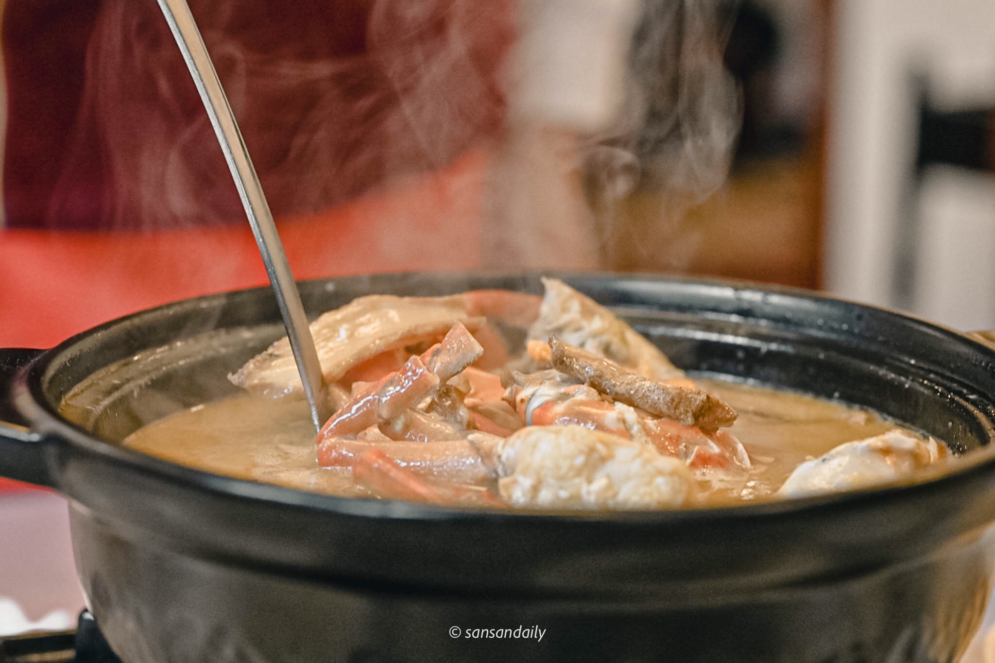 酒味在沸騰中漸漸散去,順口的麻油紅蟳湯底