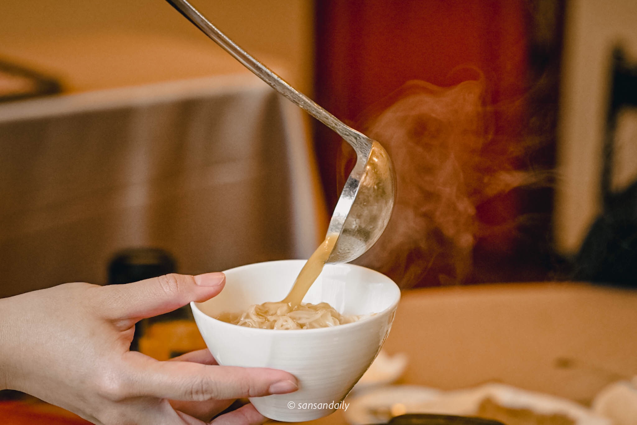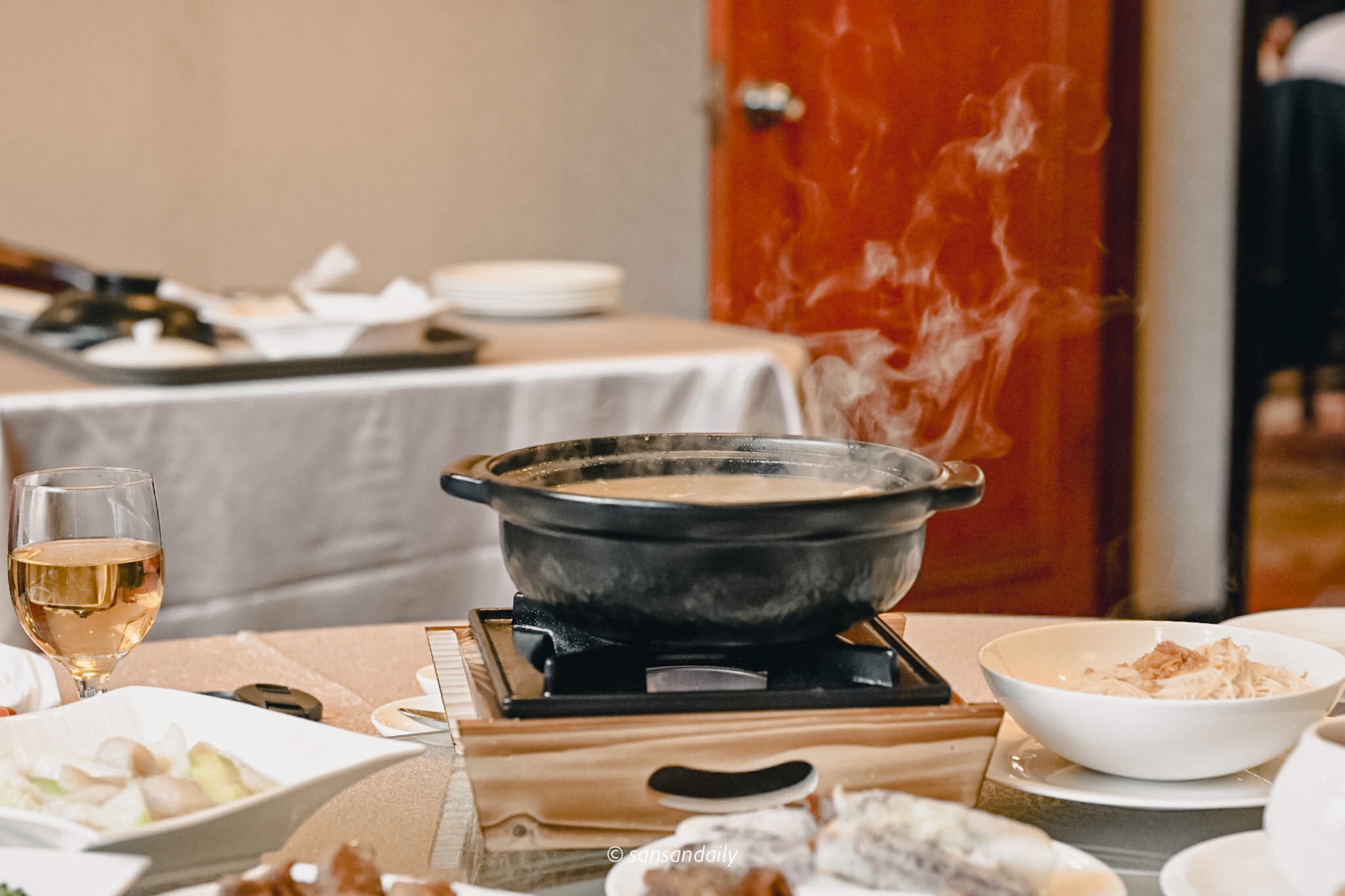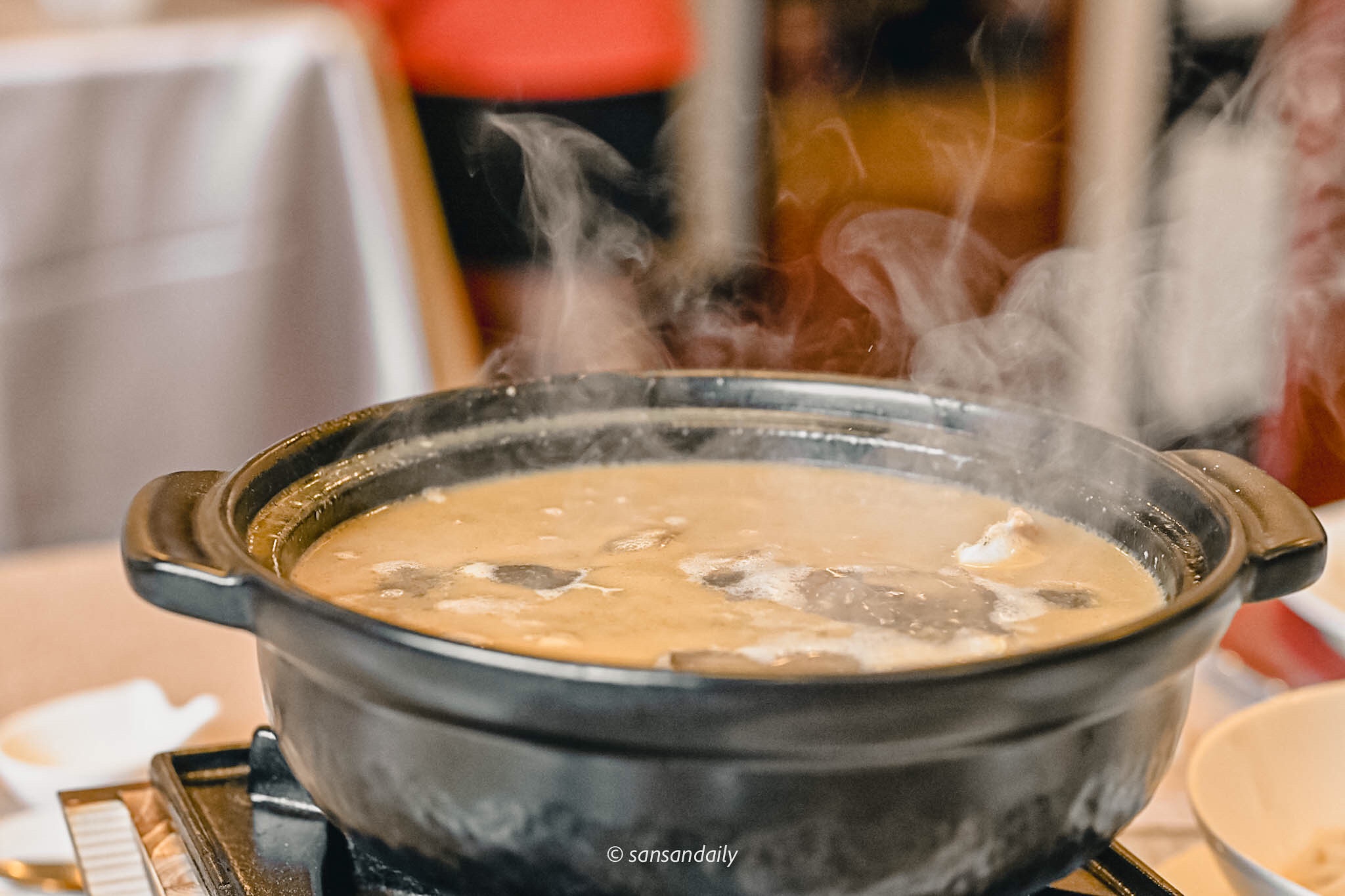 酒味在沸騰中漸漸散去,順口的麻油紅蟳湯底