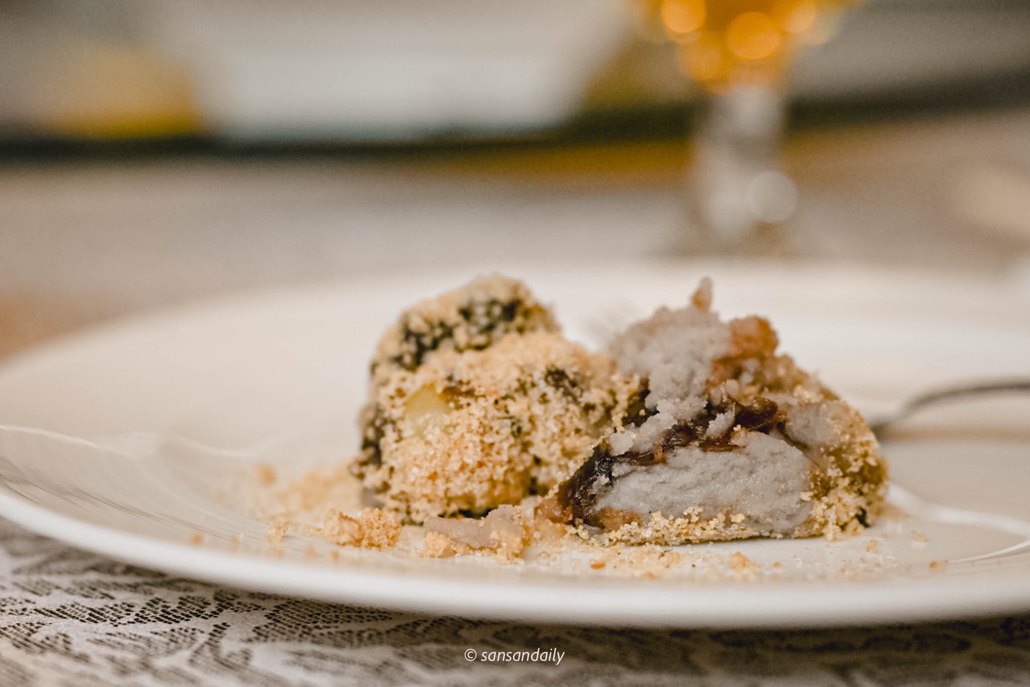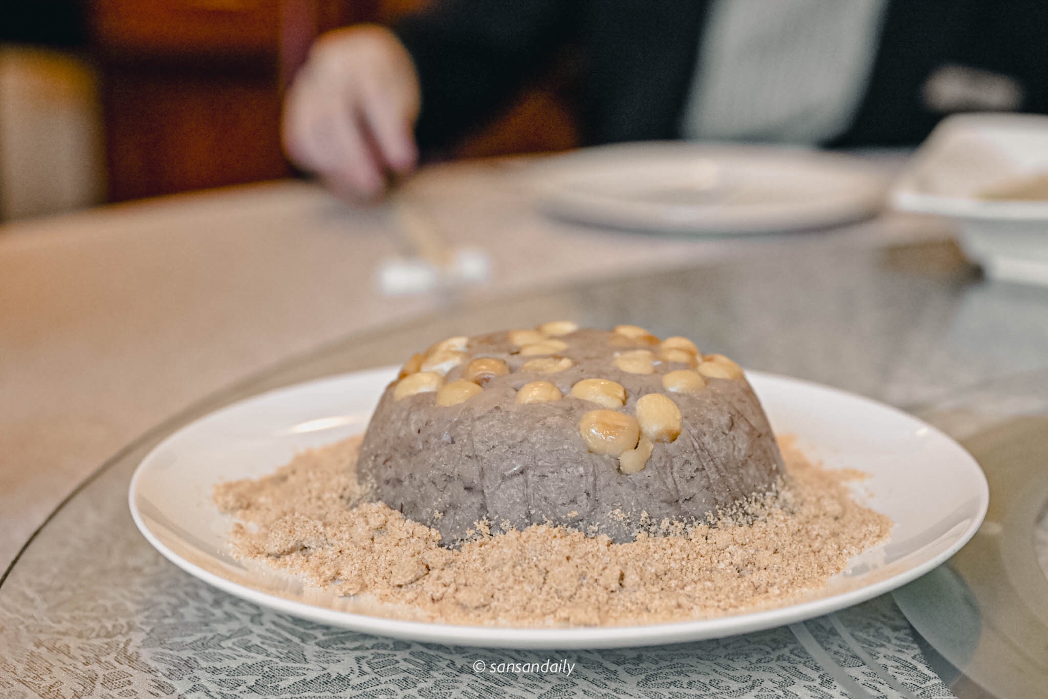 這一款熱騰騰的甜食可是要提早預約才吃得到的唷!製作時間需要1個半小時,如果你也跟我一樣是標準的「芋頭泥控」,請一定要早早跟服務員說「我要來一份芋泥甜點!」