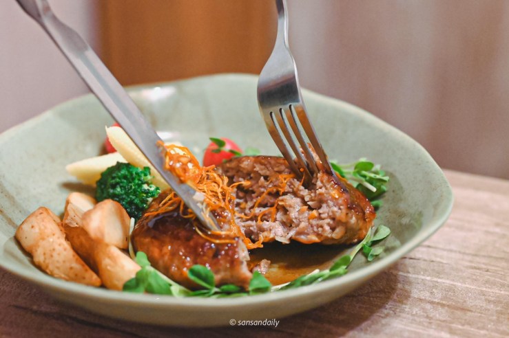 滿滿的肉汁鎖在純牛肉漢堡排裡,一刀劃下,相機都來不及反應,肉汁就爆出來,光用眼睛看就要流口水了!