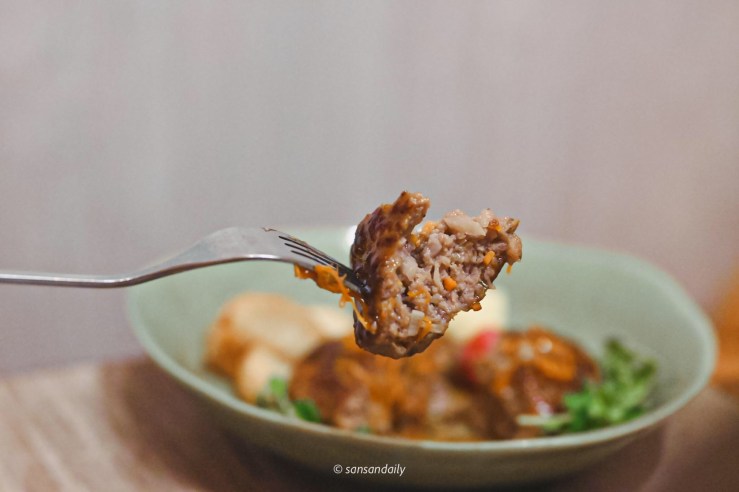 搭配紅酒醬汁,一口塞入嘴裡,人生第一塊漢堡排,銷魂!
