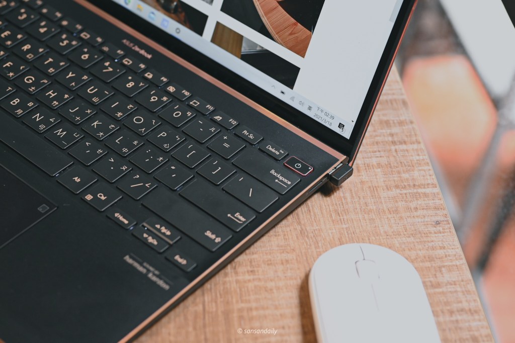 窄邊框鍵盤與大鍵帽設計,明顯提升體驗感受,不論是打字的流暢度或回應手感,有種「指尖在鍵盤上跳舞」的感覺,個人非常喜歡UX393的鍵盤表現。