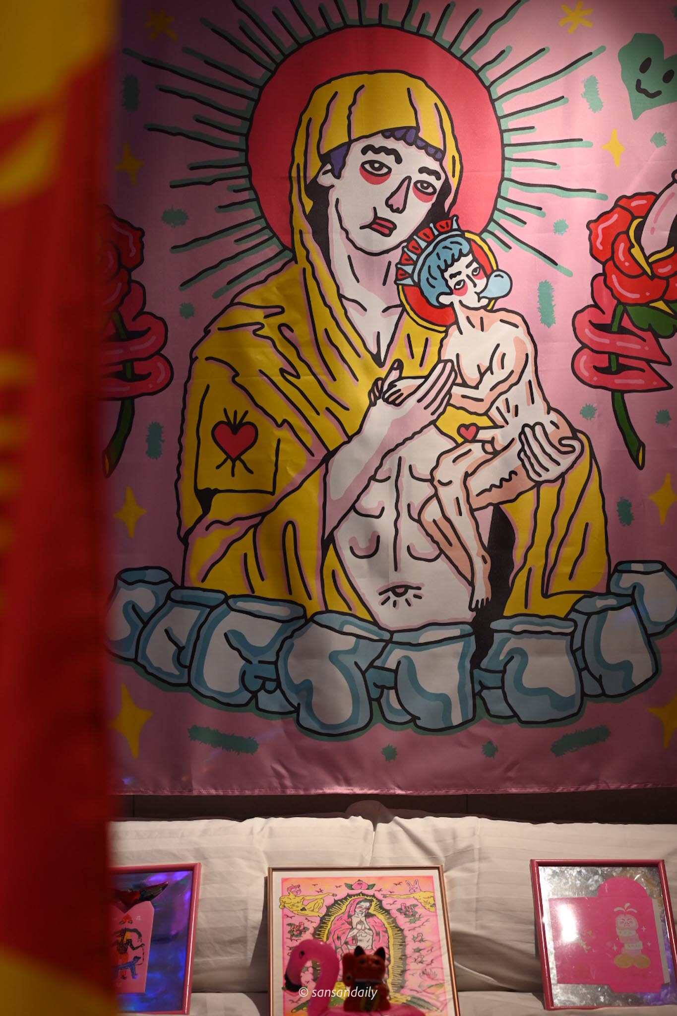 彷彿走進一個過於真實的卡通世界,18禁的重口味插畫直接輸出成落地的超大畫布,藝術,留給懂得欣賞的你(笑)