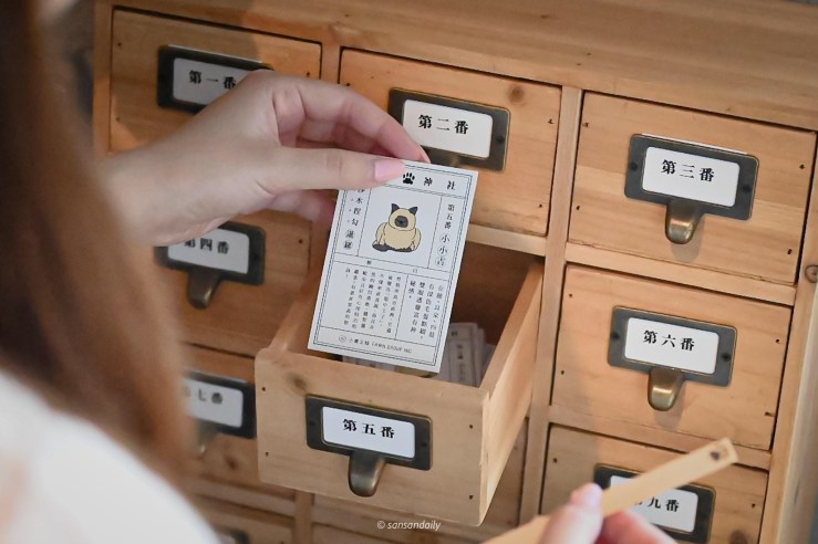離開前,抽一支喵咪籤吧!將可愛的籤詩帶回家做紀念。