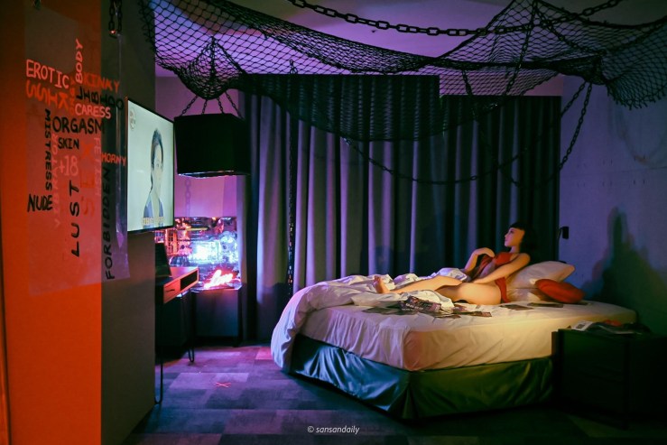 以「性」與「情慾」為主線,不論是一人體驗亦或是與另一半一同探索,每間房都能為你帶來充滿衝擊的觀展體驗,在迷幻的燈光與各式的道具中,視覺、聽覺、觸覺的感官刺激,就像一場真心話與大冒險的共同體,讓你心跳指數直接破表!