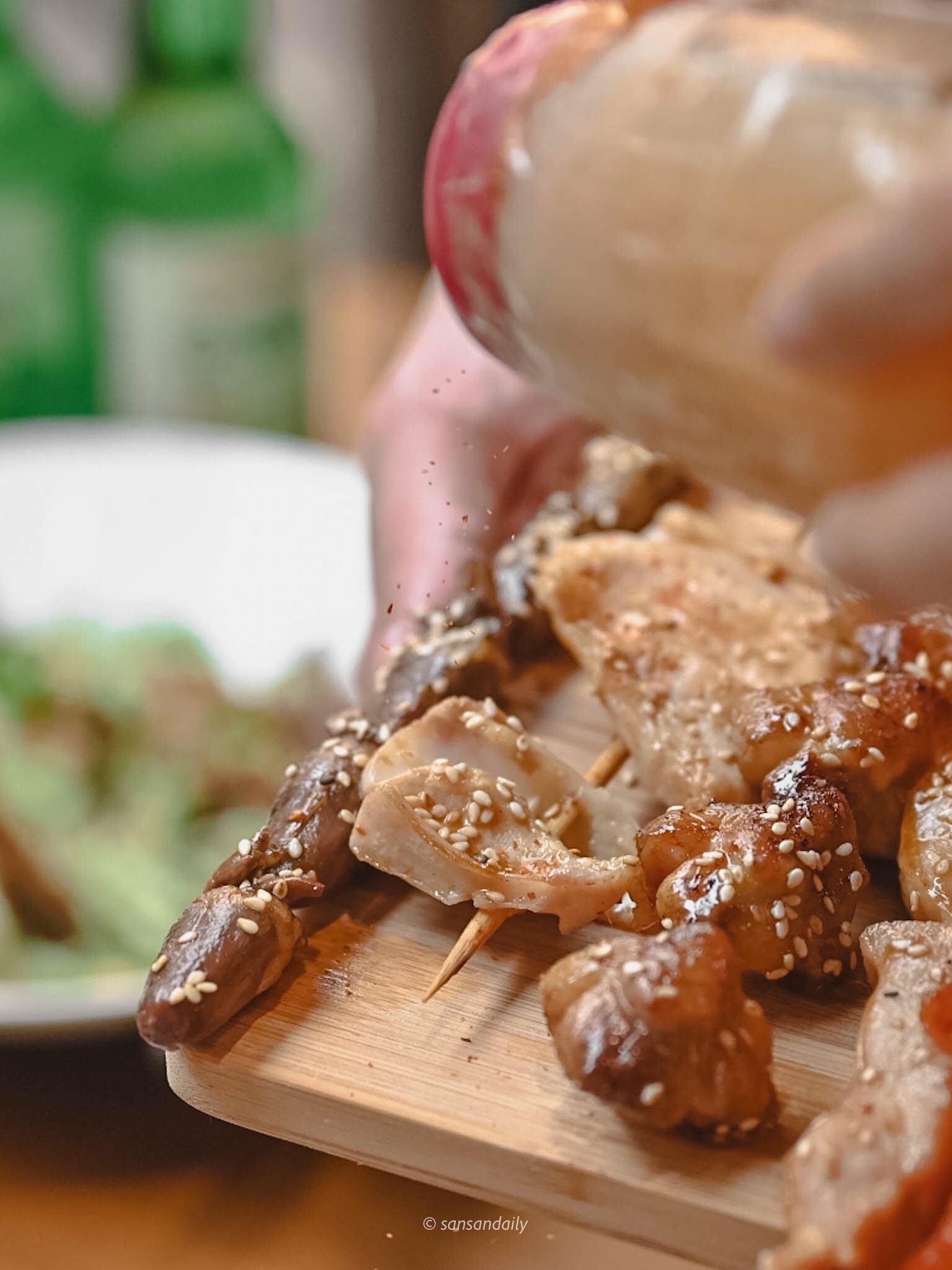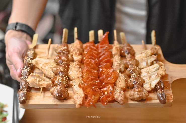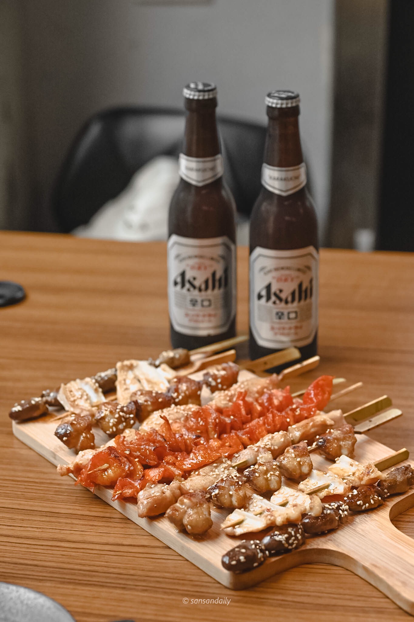 第一道以「鳥燒碳香烤串」開啟一頓大餐的前奏,雞心、雞軟骨、七里香、雞胸肉、雞皮碳烤各兩隻,五個人吃也綽綽有餘,一人一杯啤酒剛好開胃。