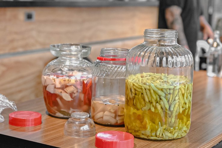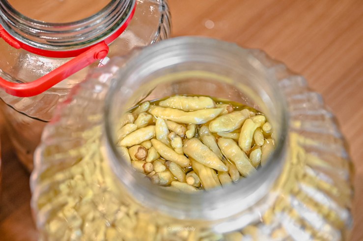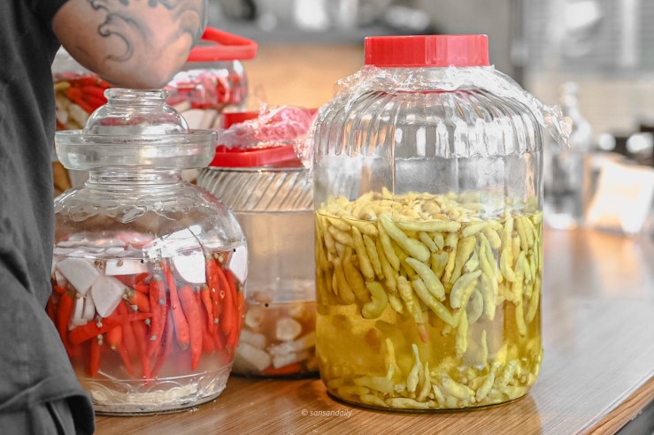 老闆娘的好手藝,靠著鼻子,就能秀出一罈的天然發酵的辣椒或蘿蔔的好與壞,稍有那一點點的走位,整罈倒掉重練!