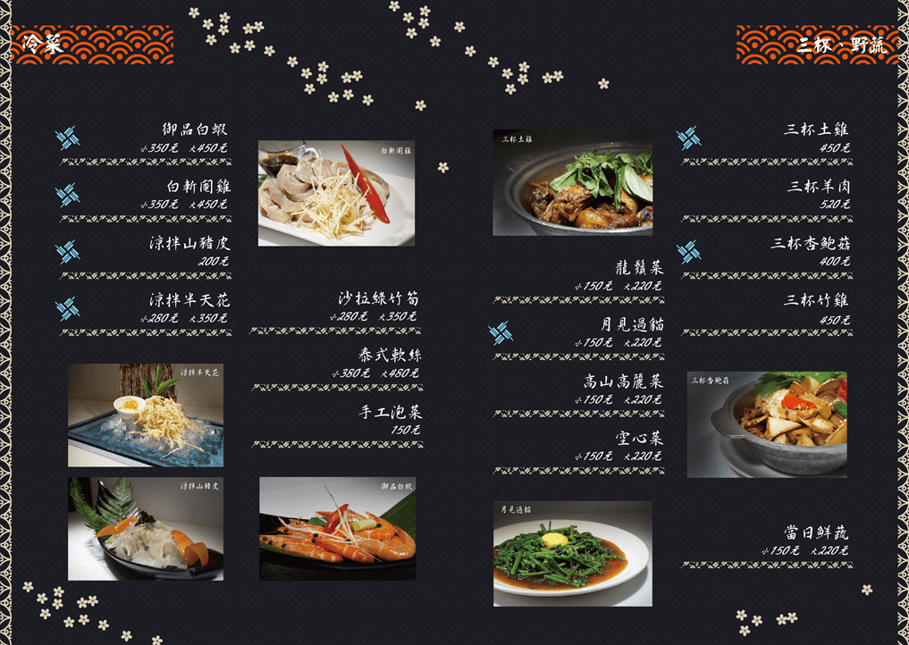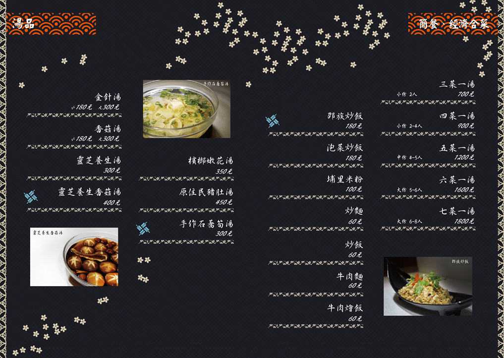 除了單點招牌菜、活魚、火鍋、熱炒、冷菜、野味、湯品等,新山味也有推出個人式套餐、簡餐、多人合菜。