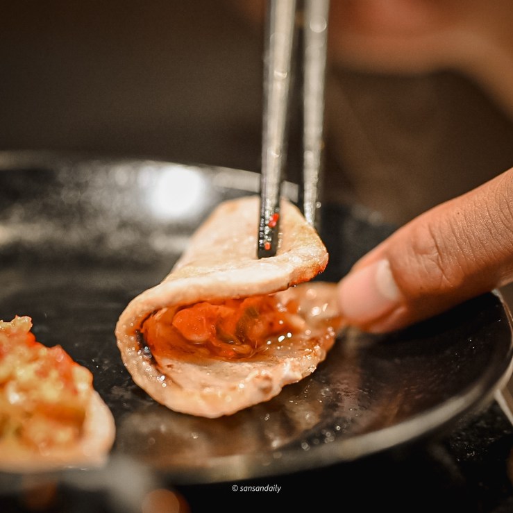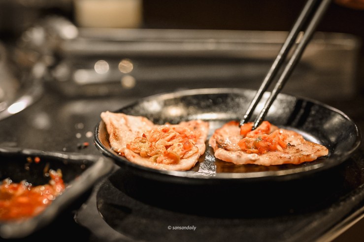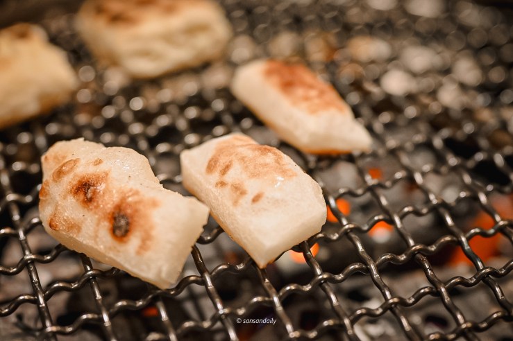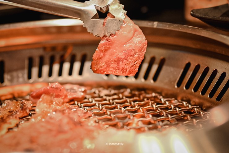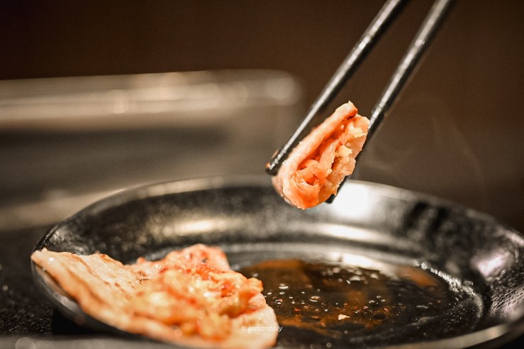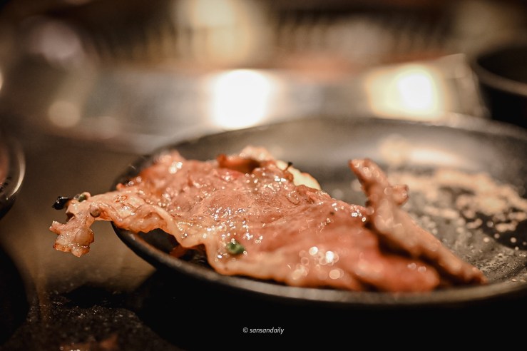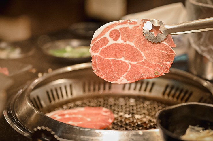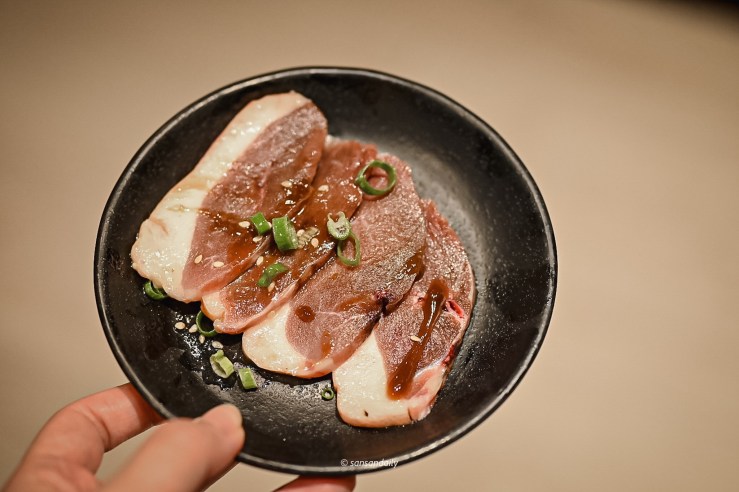 嫩肩板腱牛 我們嘗試了不一樣的烤法,店員介紹可以將烤肉醬汁先淋在生肉上再下去烤,烤完的肉質帶有烤肉醬的鹹甜味,也非常對味!