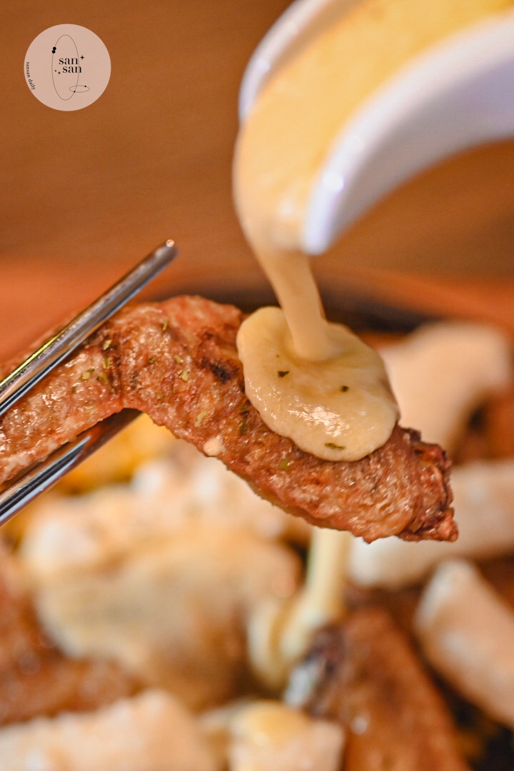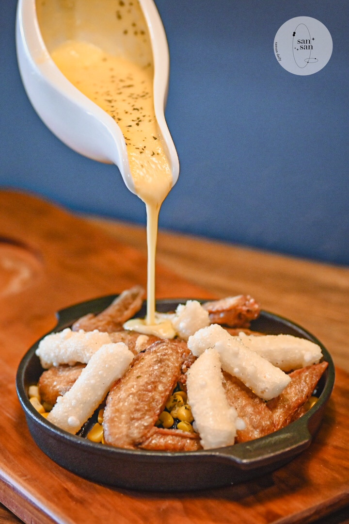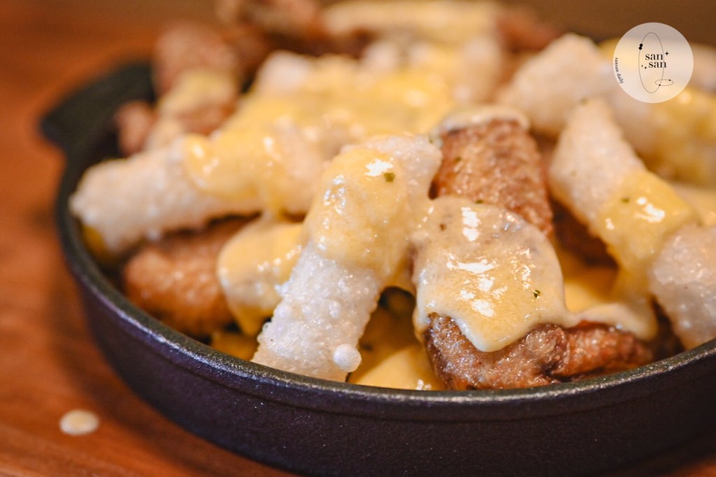 這道辛韓道的創新菜單很推薦給喜歡起司奶油風味的朋友,趁熱淋上獨家調配的起司醬,熱熱吃最美味,三五好友聚餐一定要來一份分著吃!