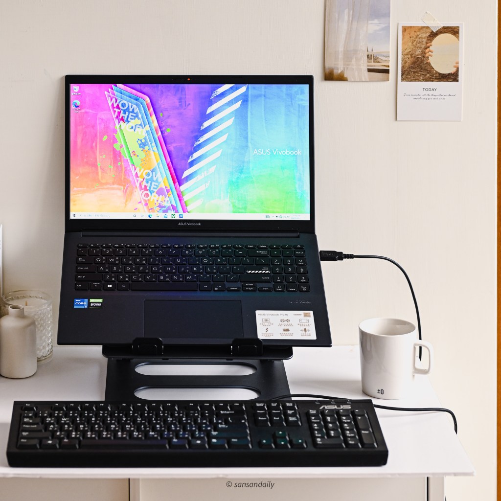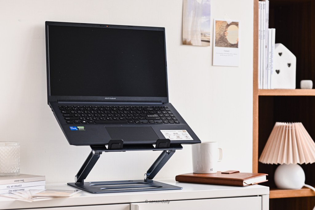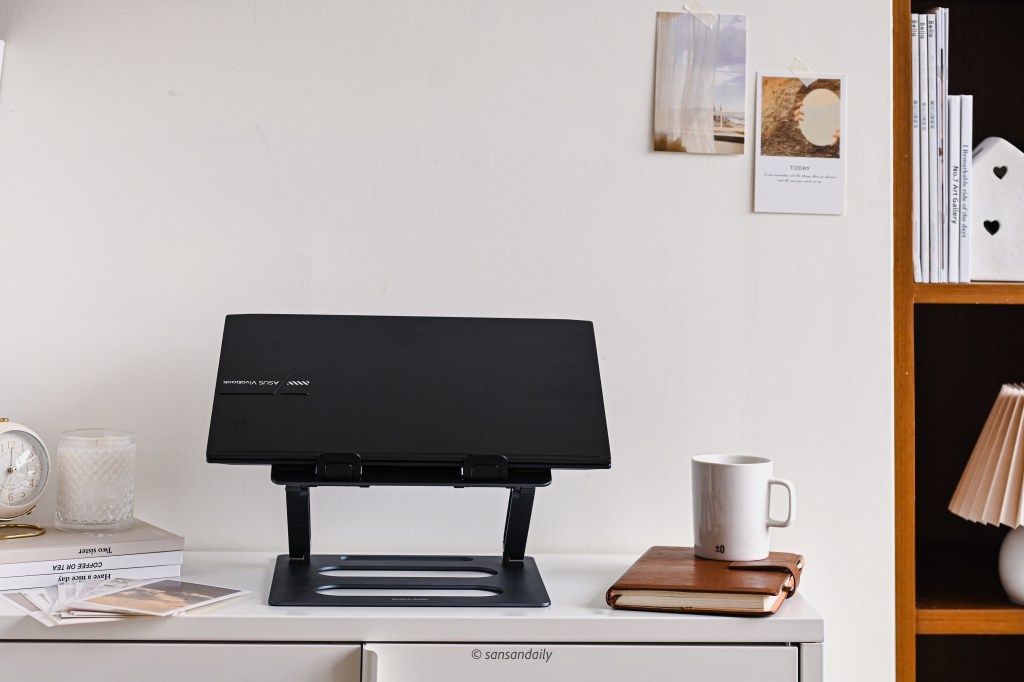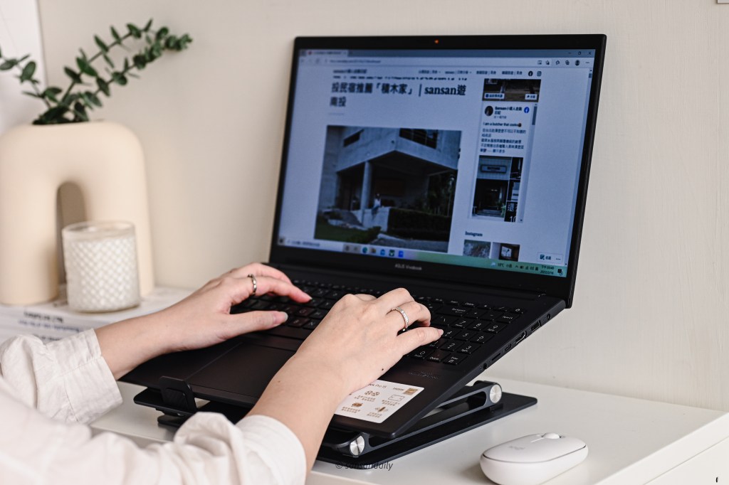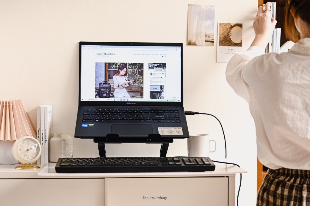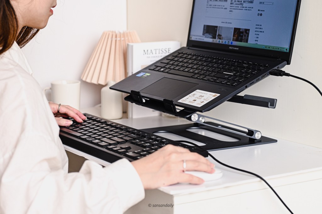 我自己以前都習慣外接鍵盤使用,現在入手筆電支架後,終於可以架高筆電,讓脖子不痠痛啦~