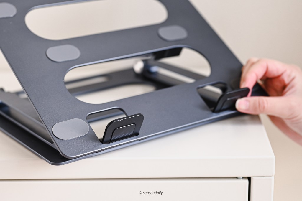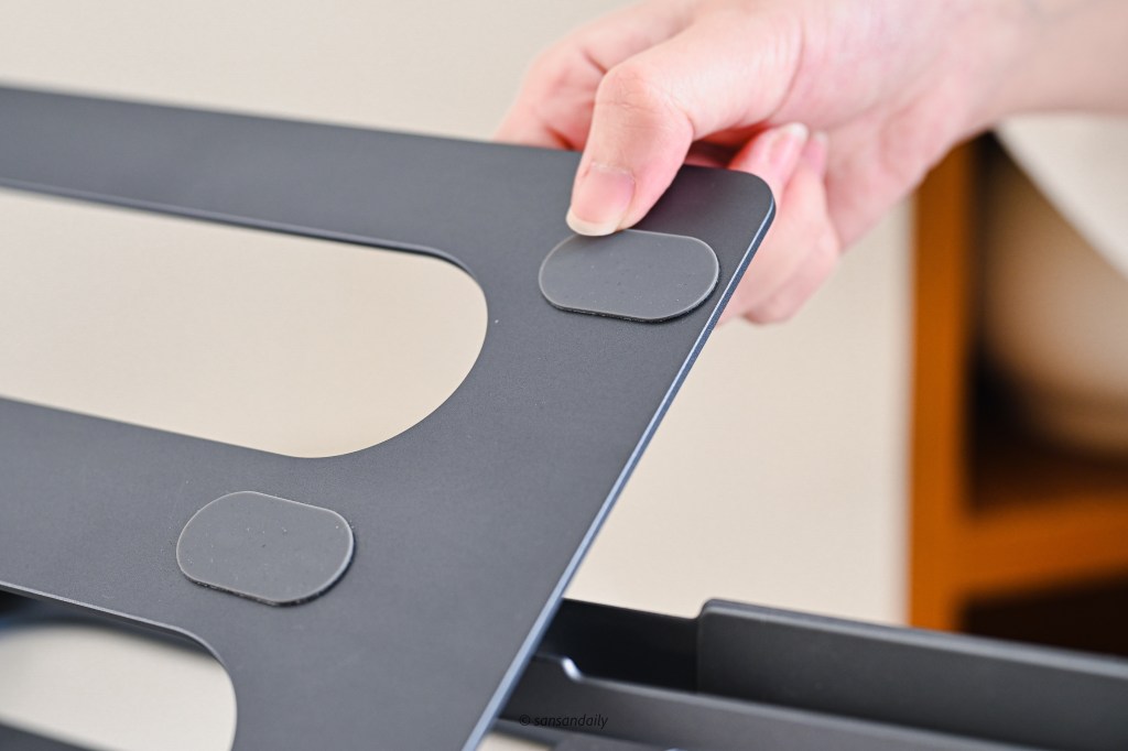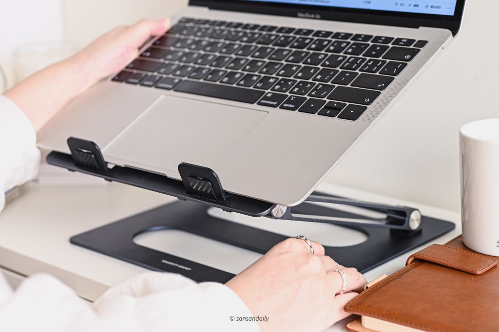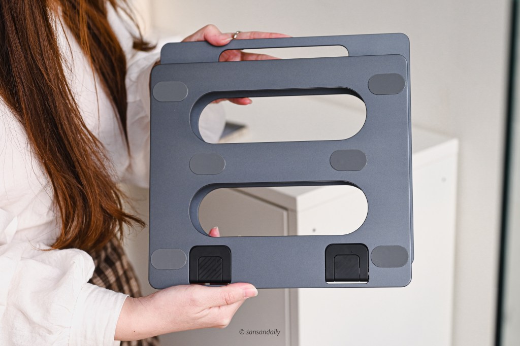 這款 頑皮鬼筆電支架 選擇的太空鋁合金質感相當好,sansan蠻喜歡這種有點重量、擁有高級觸感的金屬材質!