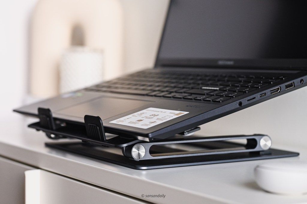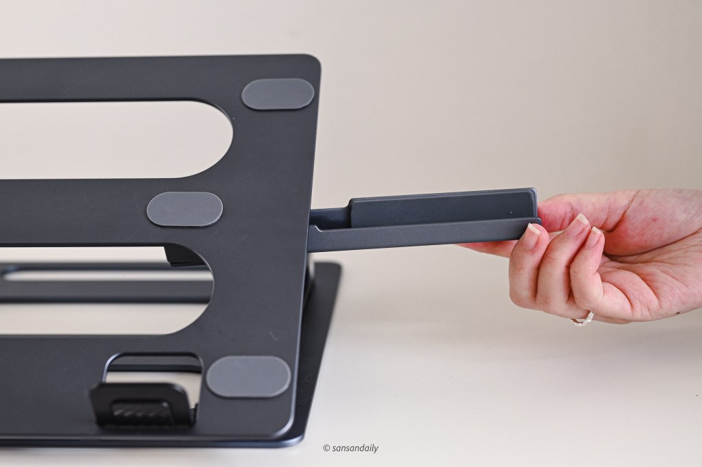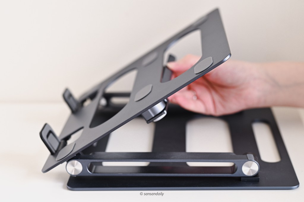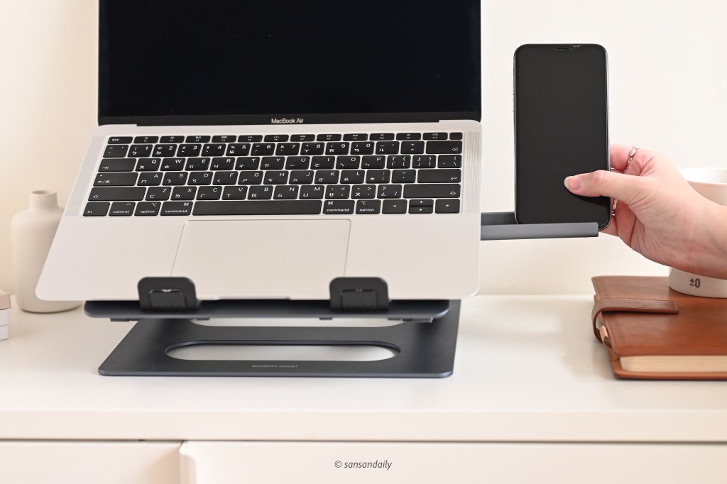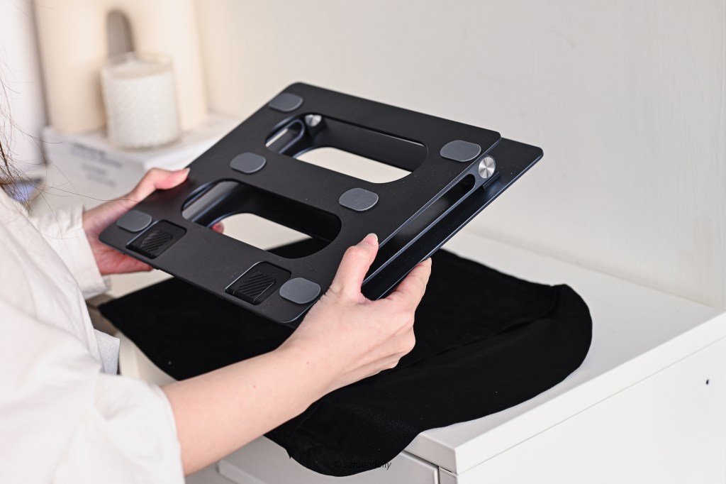 這款 頑皮鬼筆電支架 選擇的太空鋁合金質感相當好,sansan蠻喜歡這種有點重量、擁有高級觸感的金屬材質!