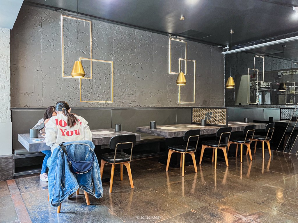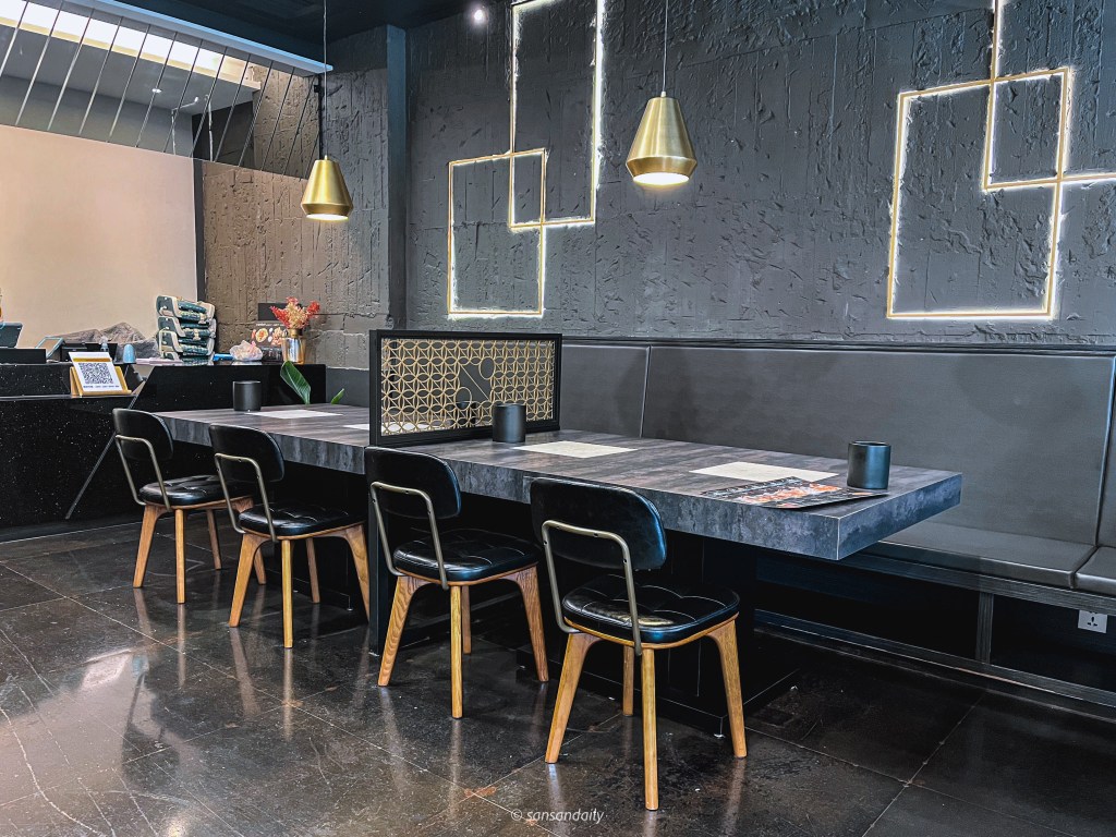 Lil Luck樂嗑泰式銅盤烤肉/泰式即享鍋的室內用餐環境以黑色為主並點綴上金色
