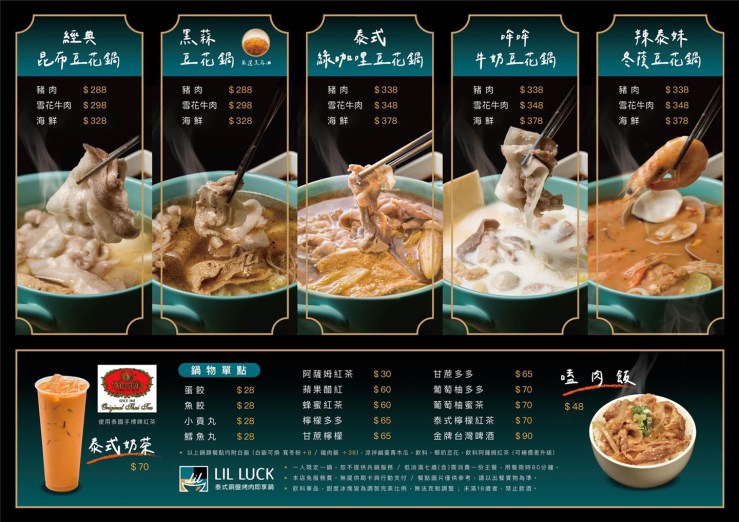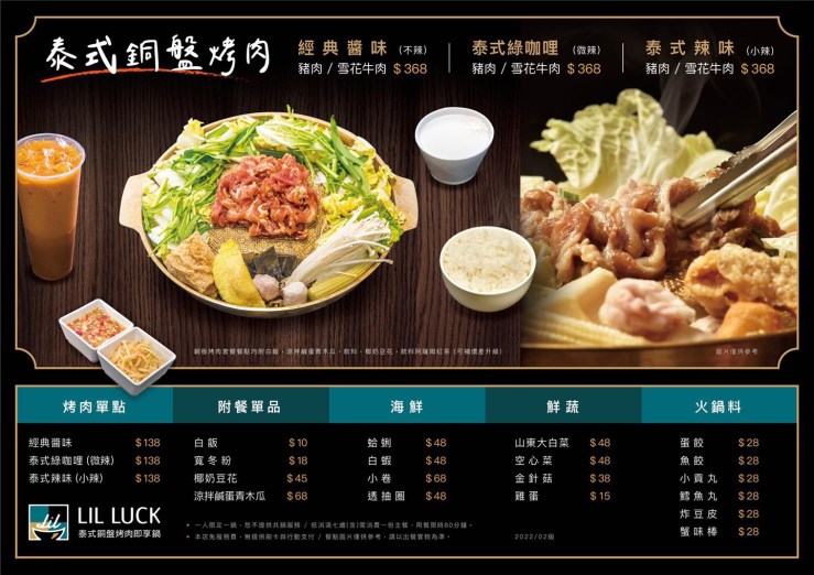 Lil Luck樂嗑泰式銅盤烤肉/泰式即享鍋 細膩的菜單設計