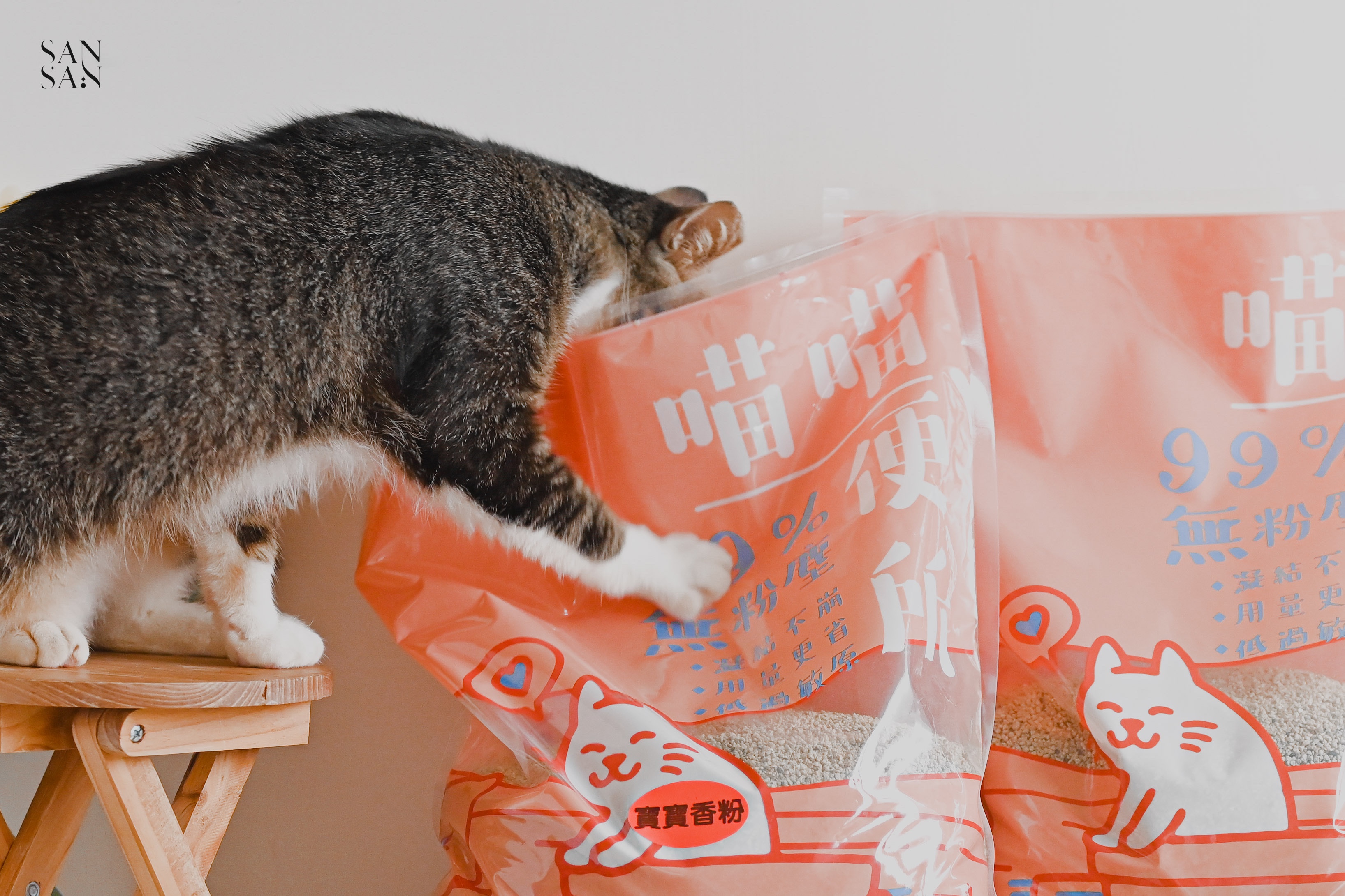 看到網路上的貓友們推薦【喵喵便所】的天然礦砂「真的無塵、除臭效果好、凝結力不錯」