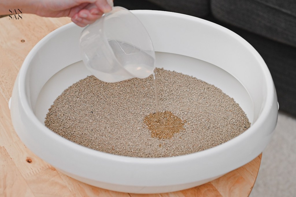 在使用豆腐砂的時候因為會有崩解的粉塵落在貓砂盆底部