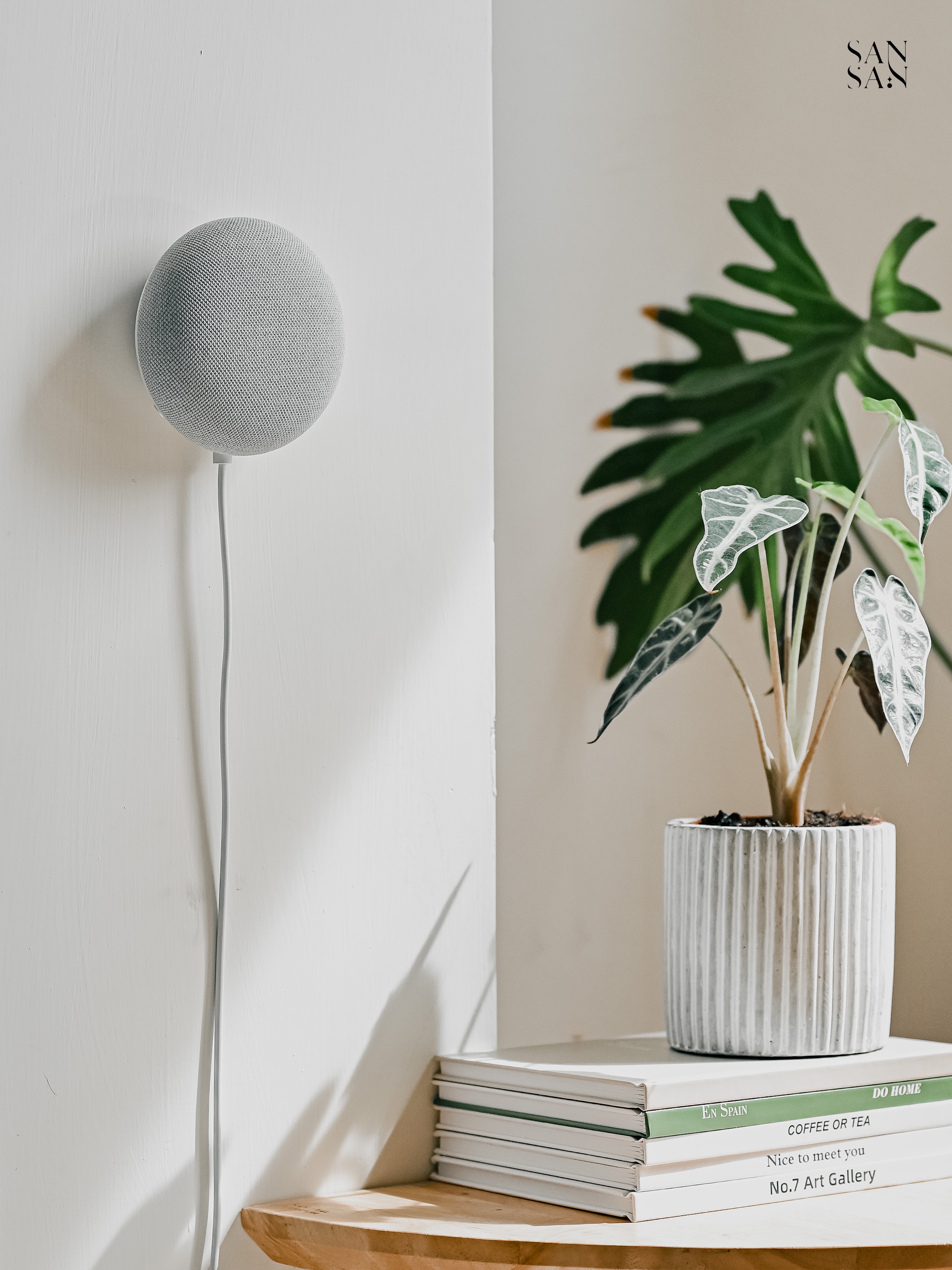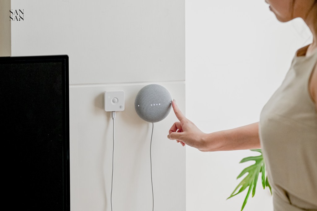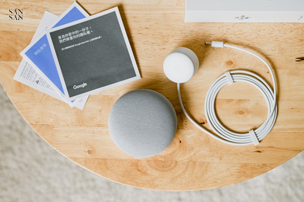 Google Nest Mini2內附的電源線,外觀美型設計,讓外貿協會的sansan相當驚喜!連小細節都考慮到了,擺在家中插上插頭,就像藝術擺件一樣,一點都不突兀還別有一番高科技感。