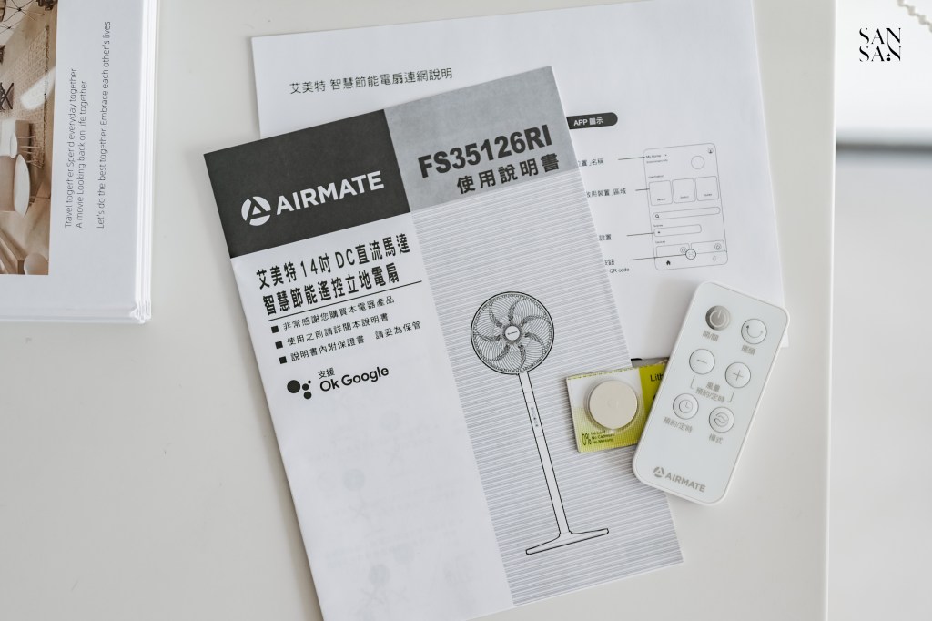 內附一組遙控器及電池,使用說明書與智慧節能風扇連網說明。