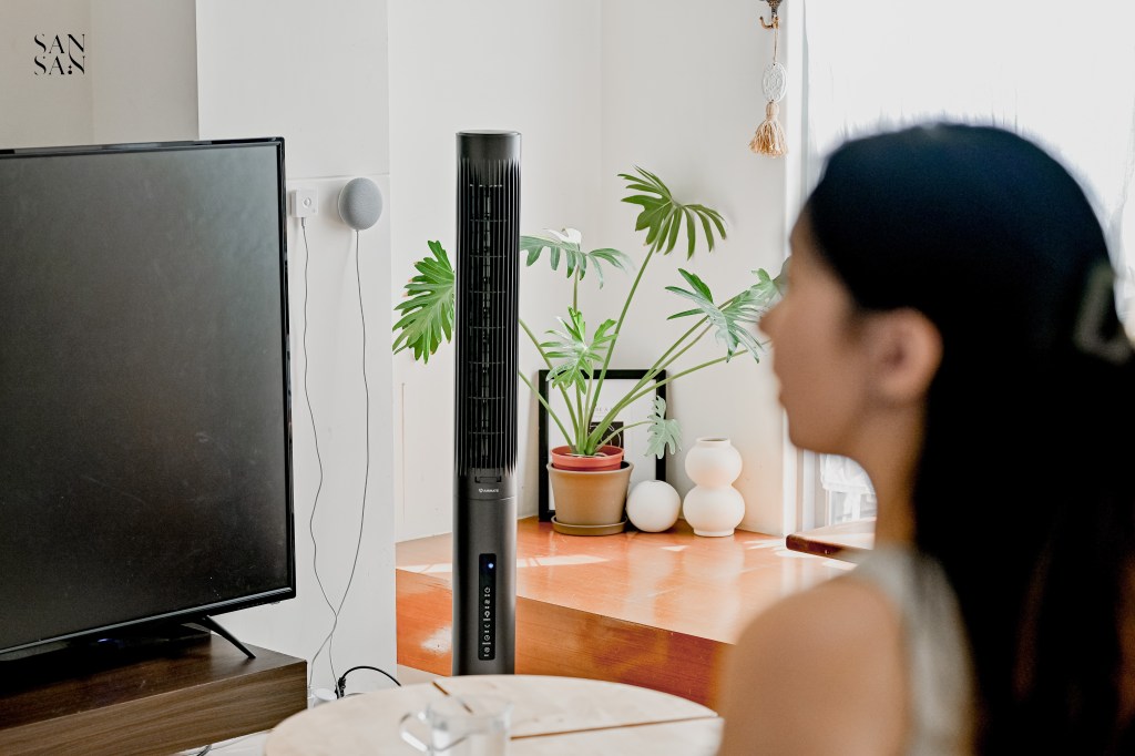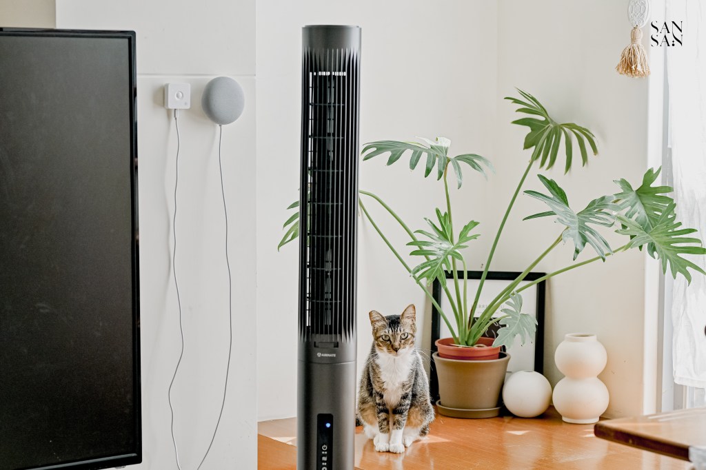 第二台介紹costco獨賣的艾美特大廈扇,有象牙白/霧感灰2色選擇。sansan配合客廳風格選擇了霧感灰,真的好有質感!