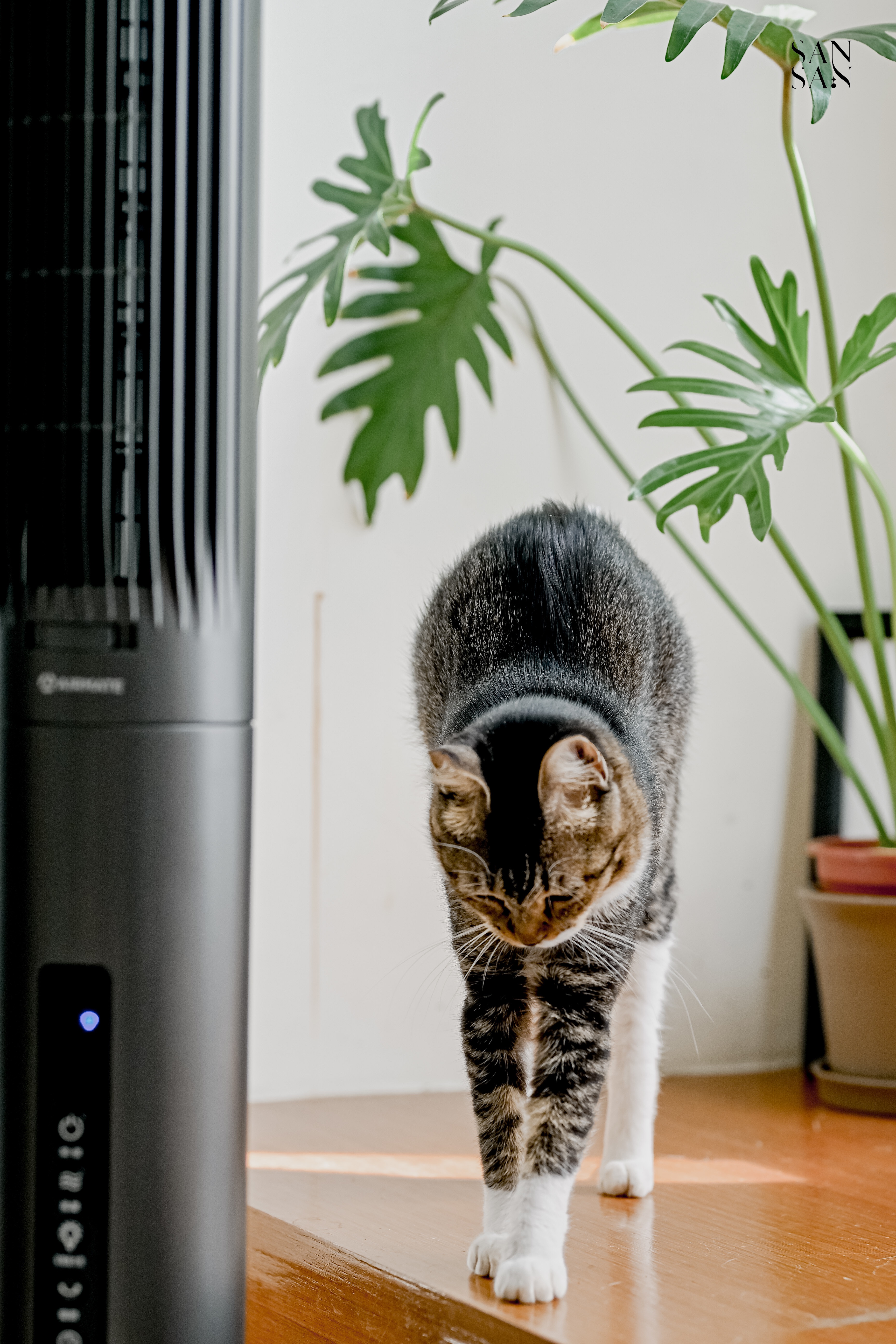 「台灣大哥大智慧家庭APP」自訂化功能,讓sansan外出時,只要一鍵開啟自訂的「寵物獨自在家模式」,一旦溫濕度感應器偵測到室內溫度過高,貓咪可能找不到涼爽的地方可以躲的時候,就會自動開啟SAMPO智慧冷氣或艾美特風扇,將環境降溫,保持毛小孩在家的舒適度!