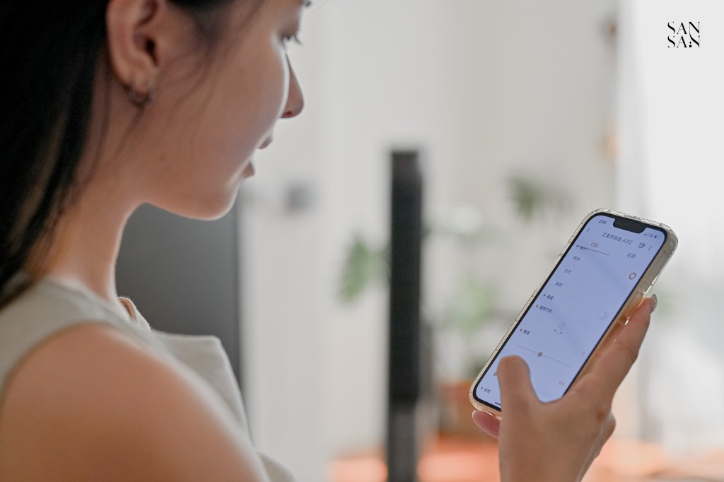 當然sansan更推薦大家可以搭配智慧音箱一起使用,艾美特智慧風扇可支援OK Google聲控操作,如果已經在床上找好姿勢、準備睡覺時,不想用找遙控器或手機,就能輕鬆方便的透過聲控進行操作,達到手手自由(?)哈哈