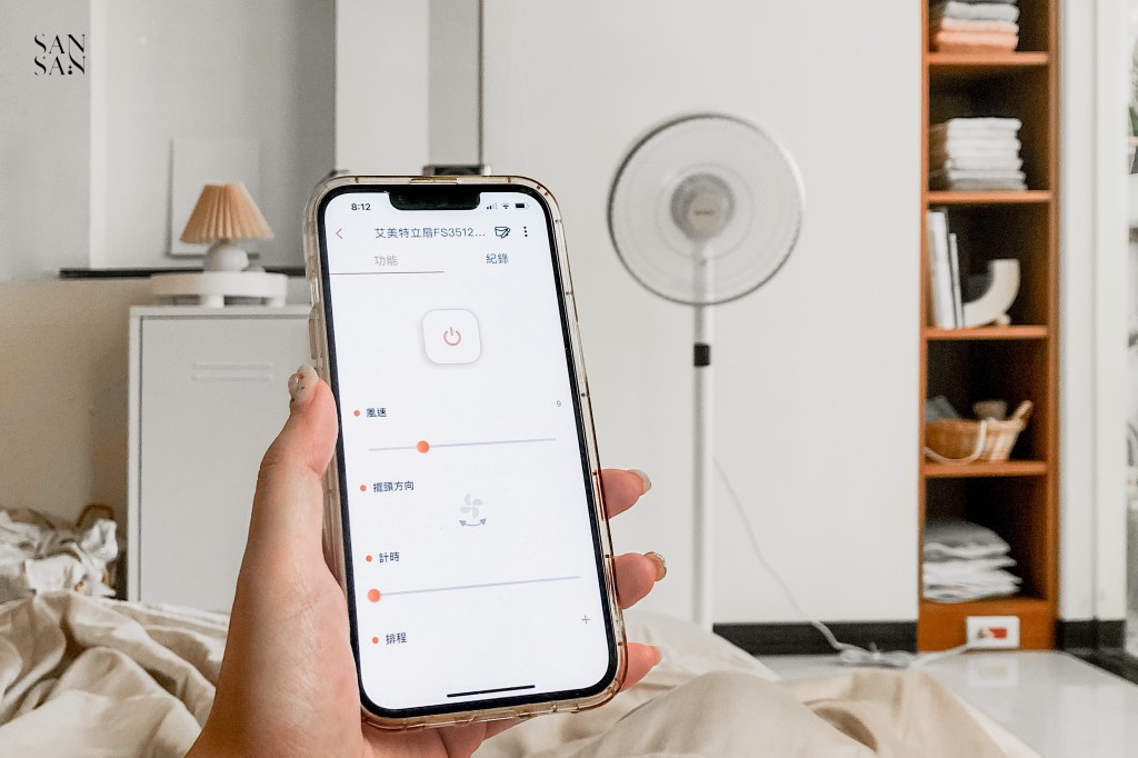 像sansan還有設定一個「定時開啟」模式,每日8-9點起床前,先預訂開啟客廳的風扇。