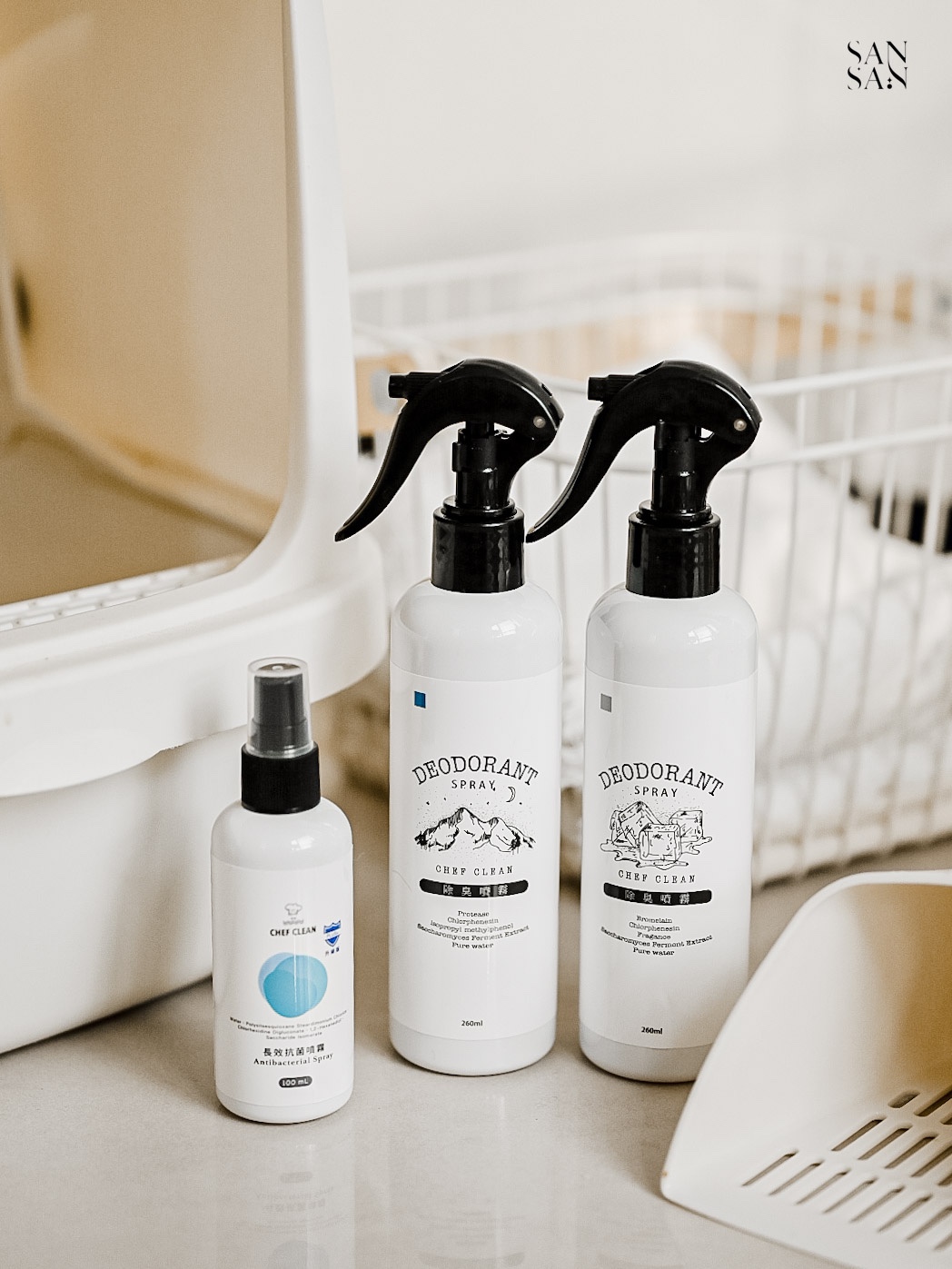 微風香調的除臭噴霧就在家中各處使用,貓咪上完廁所噴一下、回家拖鞋後在鞋櫃噴一下、上完廁所也可以噴一下~非常好用!