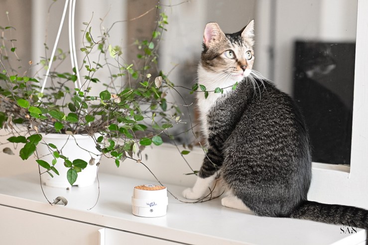 雖然平時會開空氣清淨機讓室內空氣循環淨化,但很少會移來移去,導致最主要的貓砂盆、睡覺的地方等很不容易維持空氣品質。
