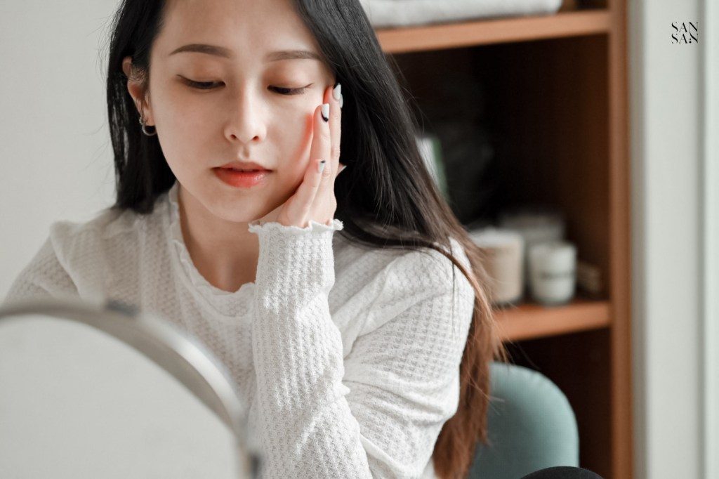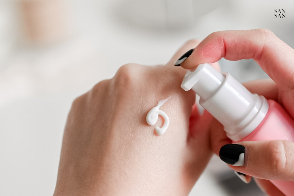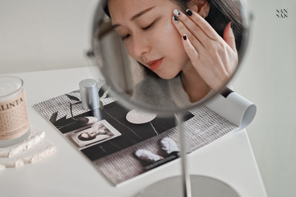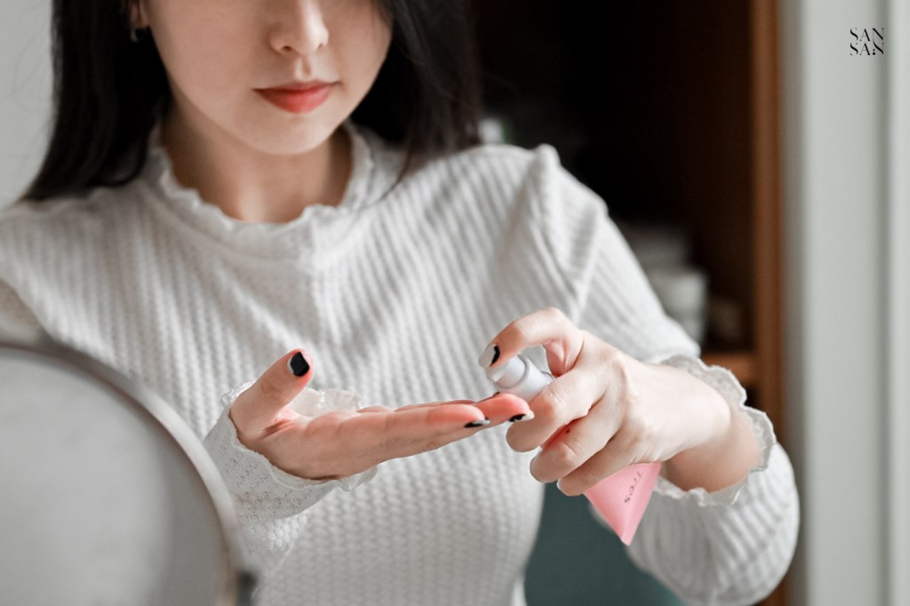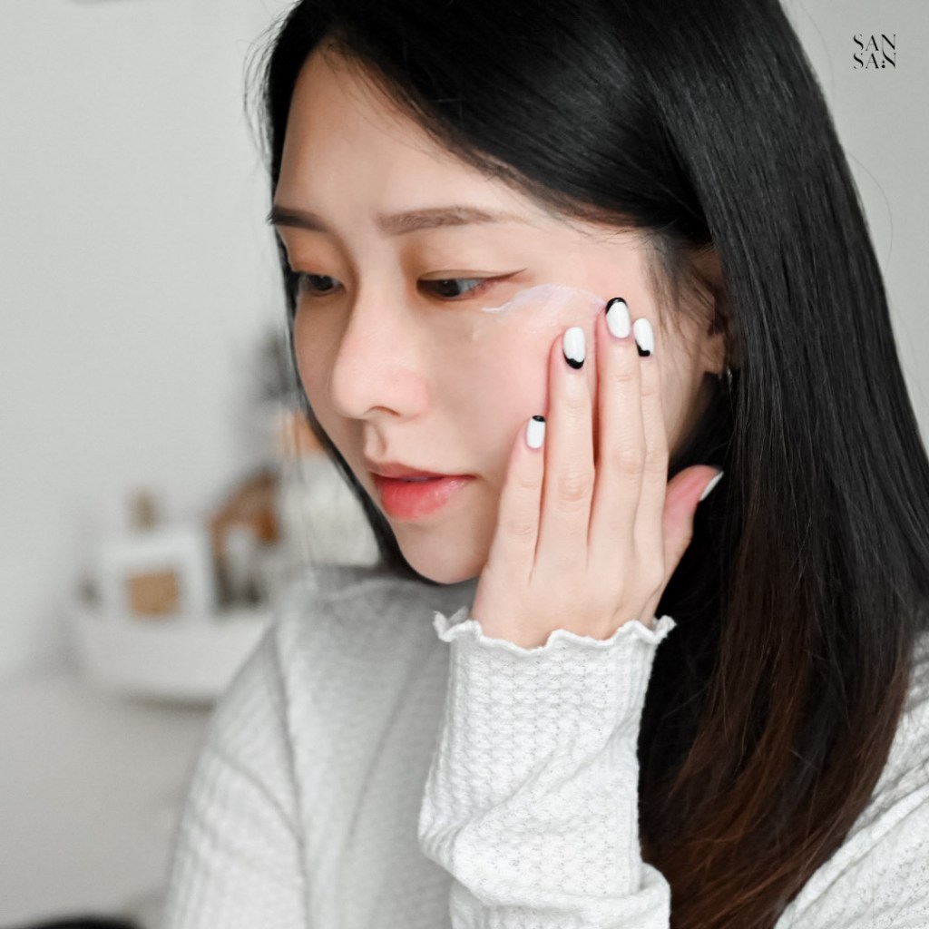 前情提要一下sansan的膚質,平時屬於中性肌,但到了乾燥的冬季就會有鼻頭、雙頰易脫皮的困擾,因此在挑選上妝產品時也會特別注重「保濕力」。做好妝前保養再加上保濕力高的隔離乳,幫我們輕鬆打造清透水感高級妝容!