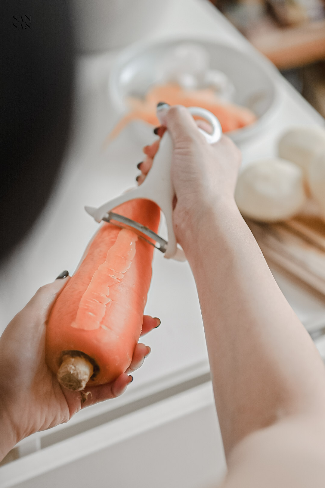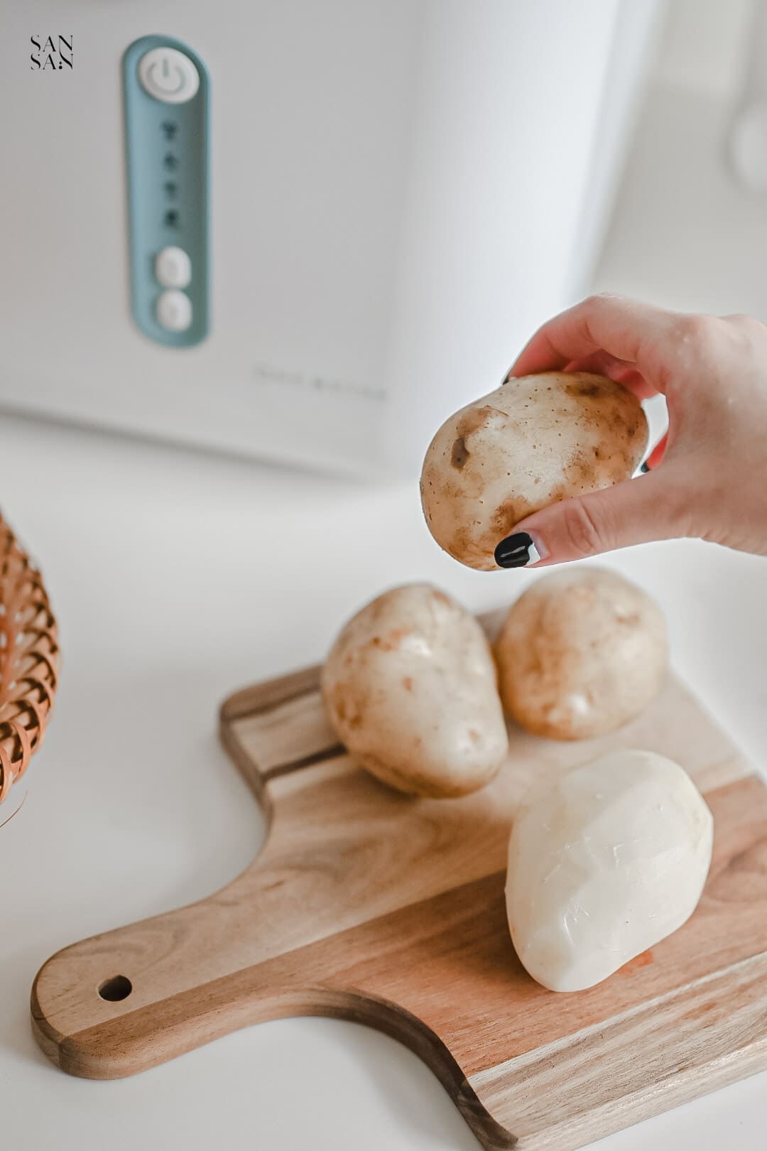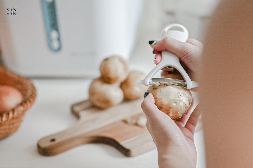 最喜歡備料過程的療癒時光,削皮、切丁、丟電鍋蒸熟。